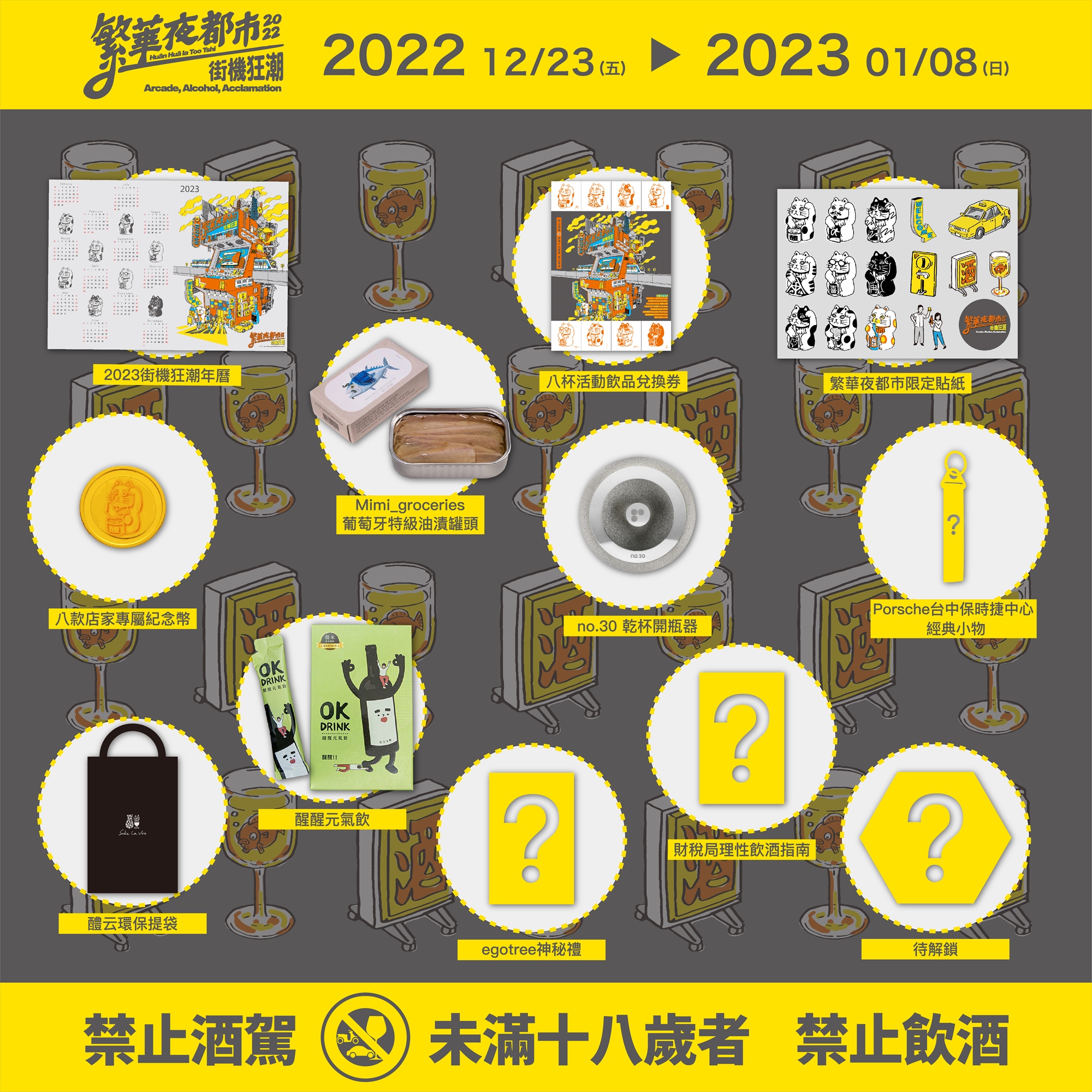 1.依中華民國酒類法規,參加者須為年滿 18 歲之成年人,若經查未滿 18 歲,無條件取消參加資格。