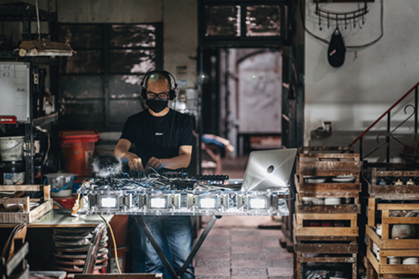 藝術家/ 姚仲涵,藝術家、音樂創作者、DJ、實踐大學建築設計學系副教授等多重創作身份。自2005年開始從事聲響創作,常藉由光與聲音之間的呼應和對比,觸發觀者對自身體感的想像。