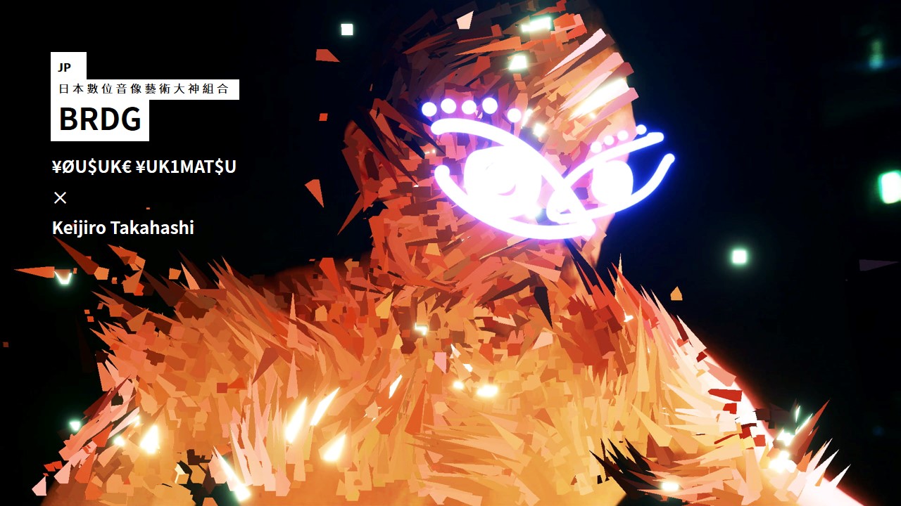 BRDG是來自日本東京的試驗派音樂組合,由多位藝術家共同以BRDG團體進行創作,以新潮實驗的創作聞名,是科技藝術圈持續膜拜的大神組合。而此次!你將成為親臨現場瞻仰大神獨家演出的第一人!這一次,BRDG將為台灣觀眾獻上從未在「實體觀眾」前公開的內容!這一次將在現場以絢麗視覺與魔幻電子之聲偷走你的心臟。由¥ØU$UK€ ¥UK1MAT$U的迷幻實驗電子音樂搭配 Keijiro Takahashi的XRVJ即時生成視覺,透過現場影像與虛擬視覺的合成,猶如在虛擬與現實的邊界遊走,帶領你前往異域神地探險。