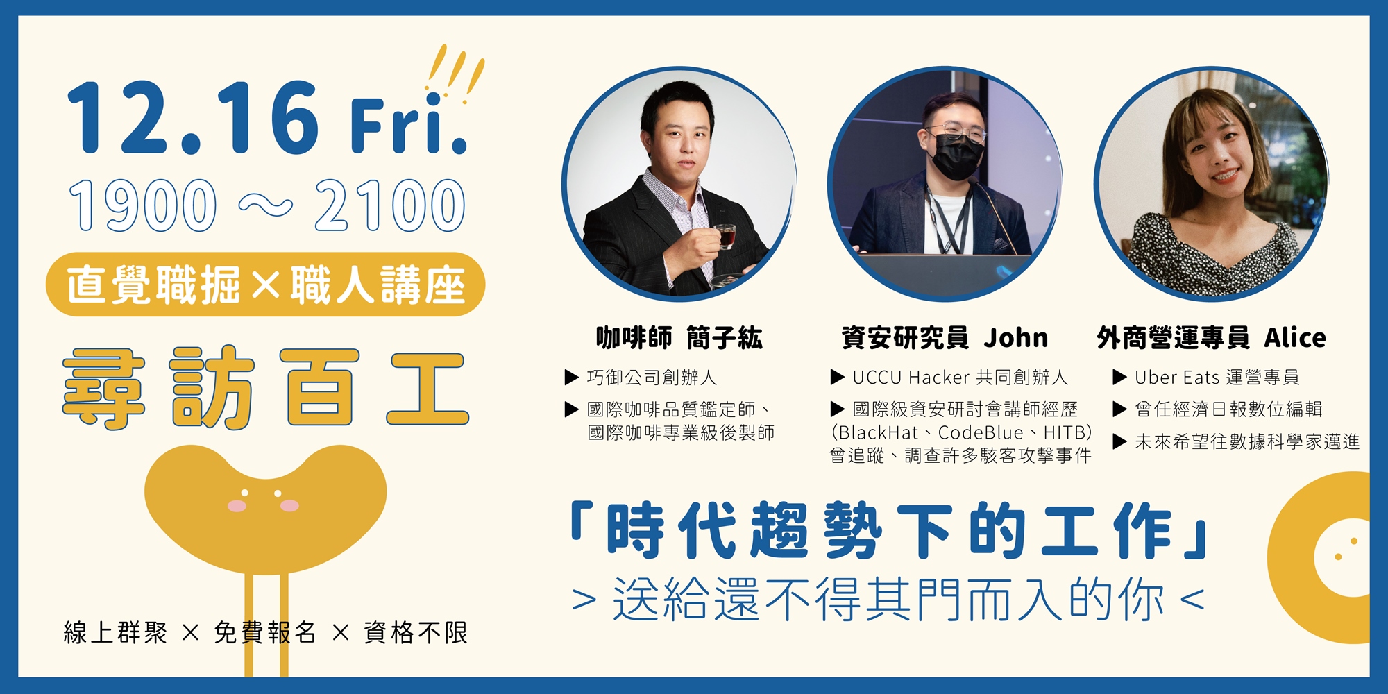 2022.12 月的 免費線上 職人講座,全新主題「時代趨勢下的工作」