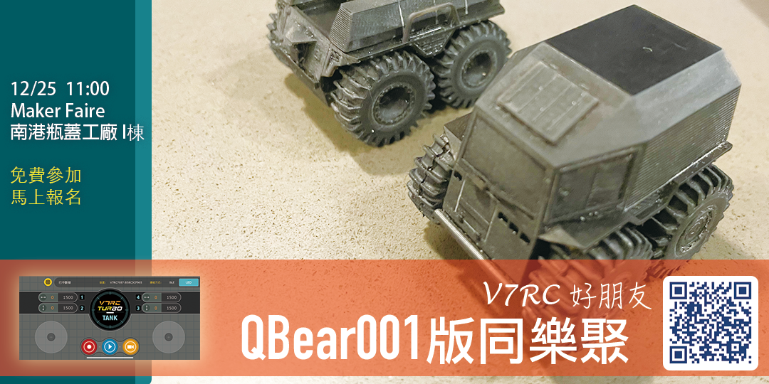 Make Faire 熱映加開工作坊,由永仁老師親自面對面介紹QBBear001控制板與V7RC遙控,實現扭蛋大小的駕駛樂趣。
