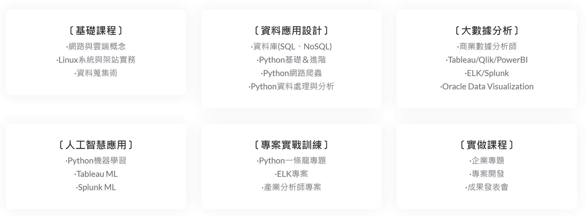 包含課程、上機實作、專案實作時間等。零基礎、非相關科系都能學習!