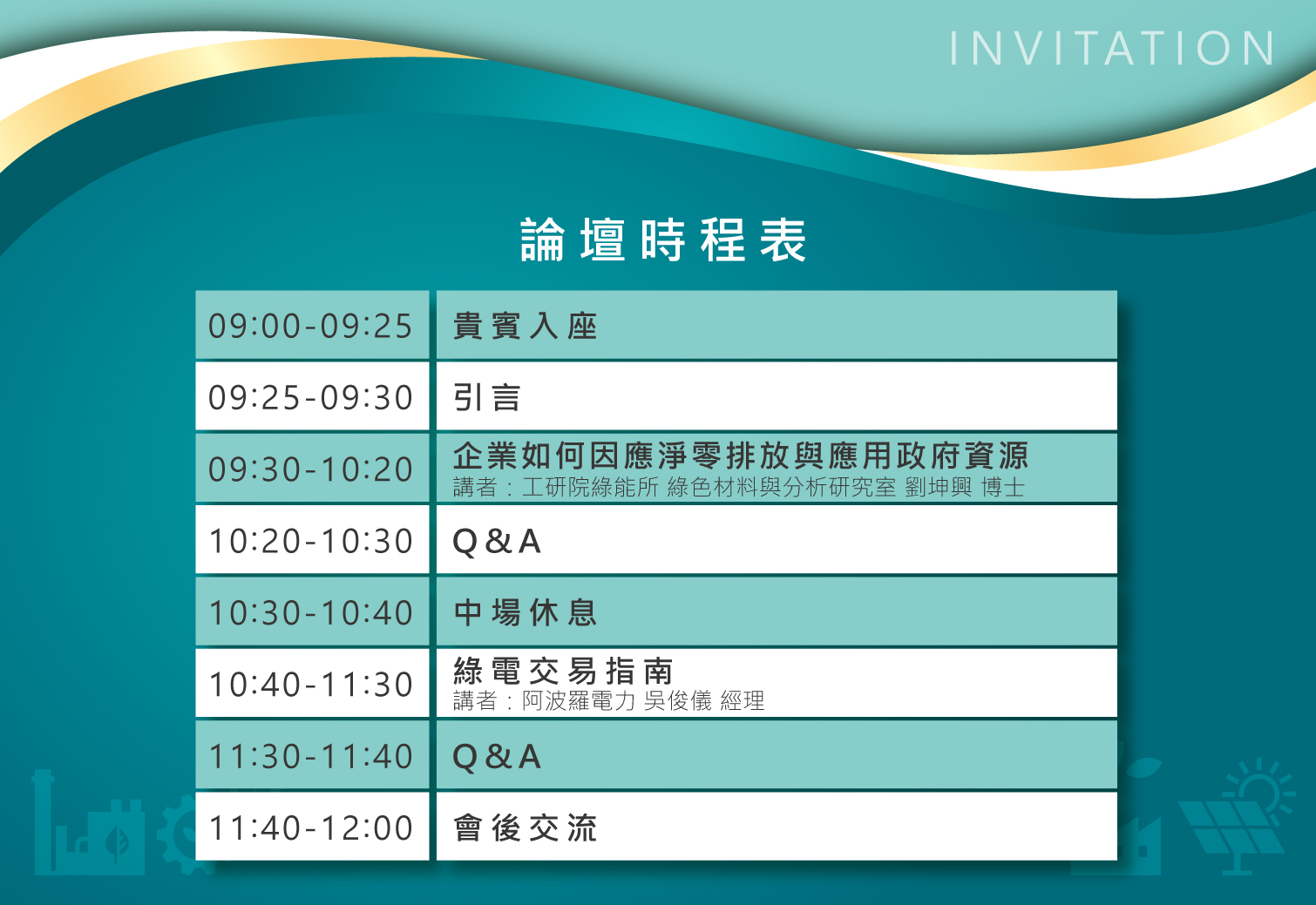 透過論壇活動將提供企業與綠能發電、售電媒合機會,並整合最新趨勢及政府資源,與企業夥伴攜手落實永續發展。