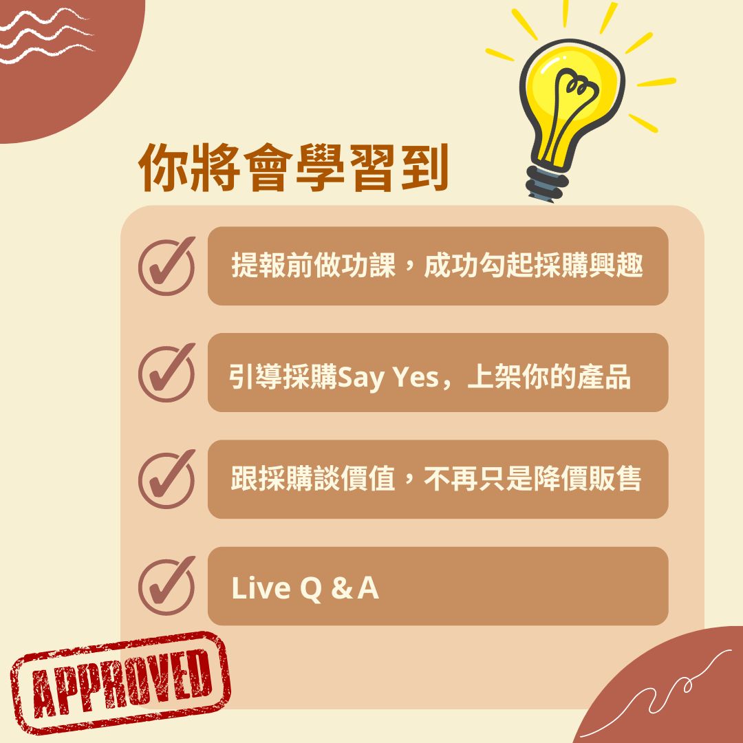 邀請你來聽這堂免費線上講座,幫助你更好的掌握上架通路的技巧。全程聽完講座者,還可以獲得上架通路流程表。