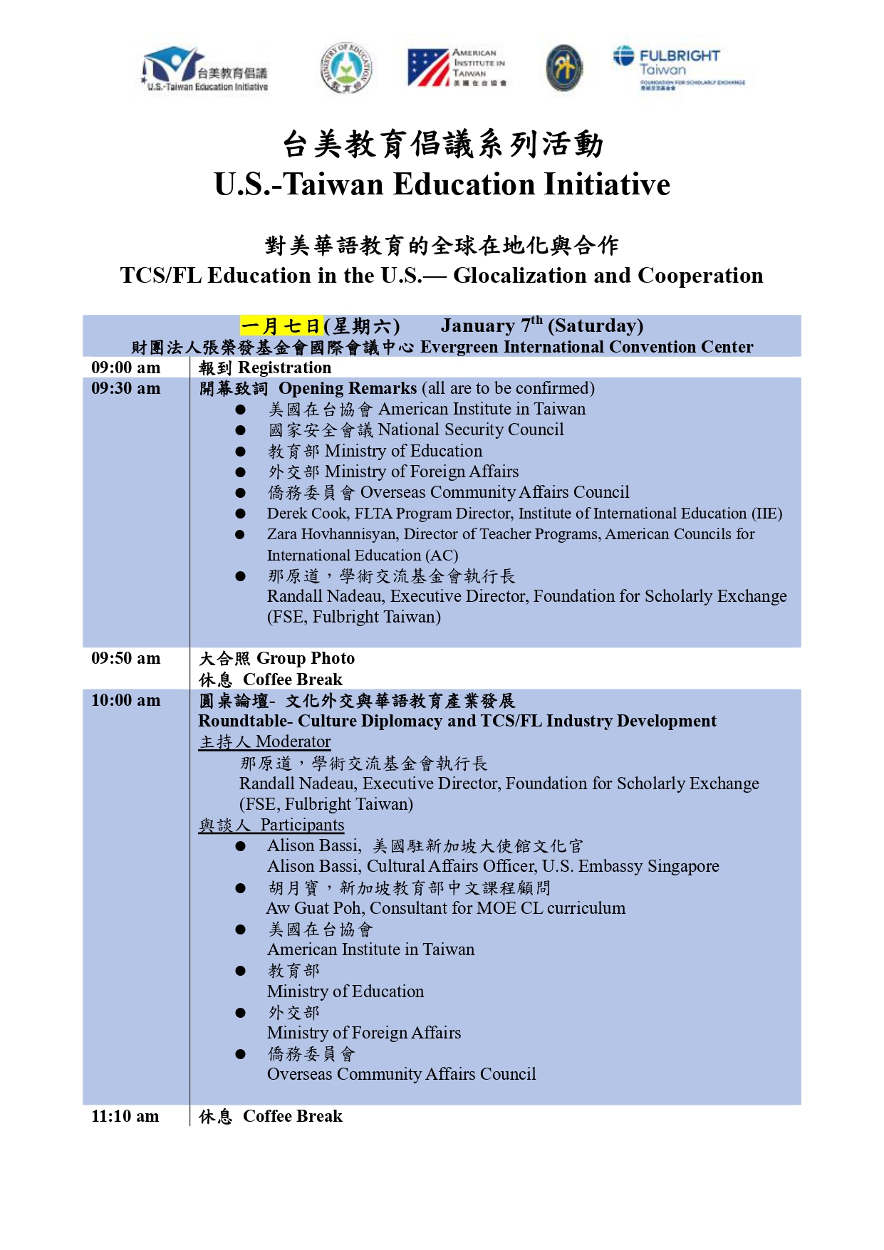 自2020年12月台美簽署「台美教育倡議」後,雙邊對於美國的華語教育相關計畫更加活躍。學術交流基金會(Fulbright Taiwan)與美國在台協會(AIT)教育部(Ministry of Education)及外交部(Ministry of Foreign Affairs)合作,再次舉辦華語教學研討會。此次主題為「對美華語教育的全球在地化與合作」,邀請華語教學界產官學專家學者及第一線教學者共襄盛舉。會中將探討文化外交與華語教育產業發展、全球化與在地化交疊的國際中文學習趨勢、華語教學教材與教法、華語教育界的挑戰、美國教室裡的文化教學、華語教學與流行元素以及地球村裡的在地文化教學。