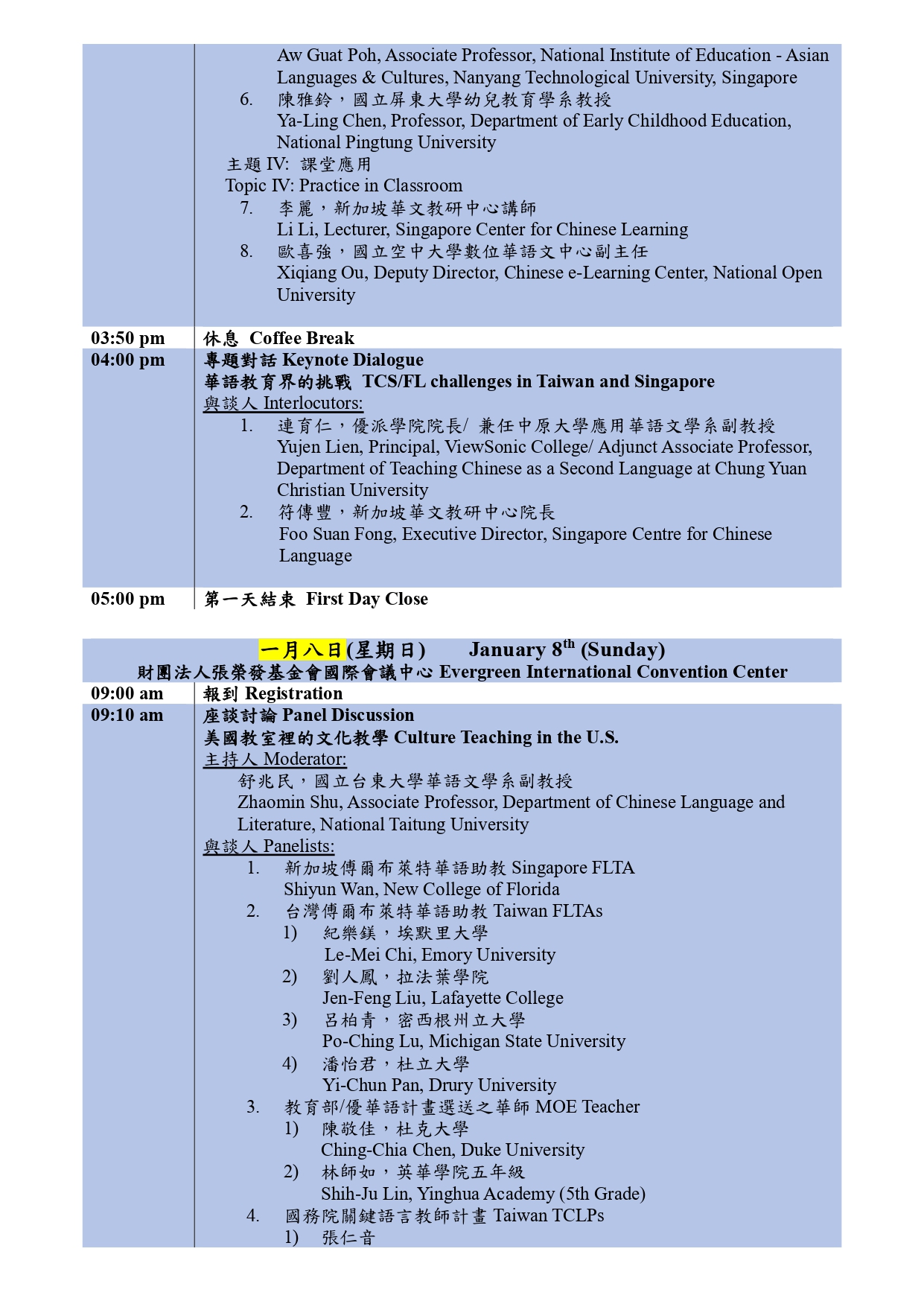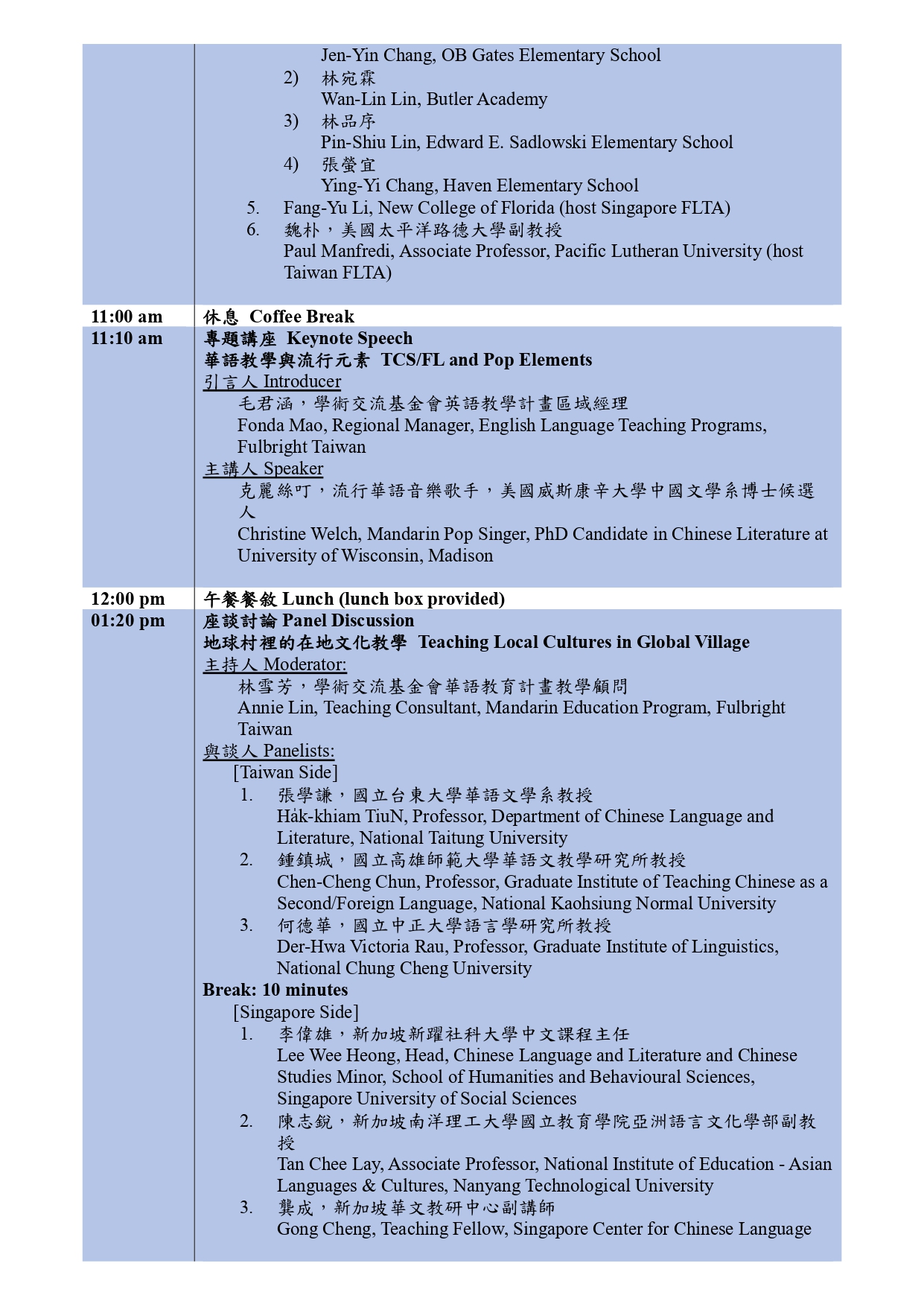 此次除了增加文化面向的討論,亦因應傅爾布萊特華語教學助理計畫新增新加坡名額,特別邀請新加坡華語教學相關領域之學者專家加入。我們希望透過聚焦美國華教的研討會,讓台灣與新加坡華教有更豐富的交流。