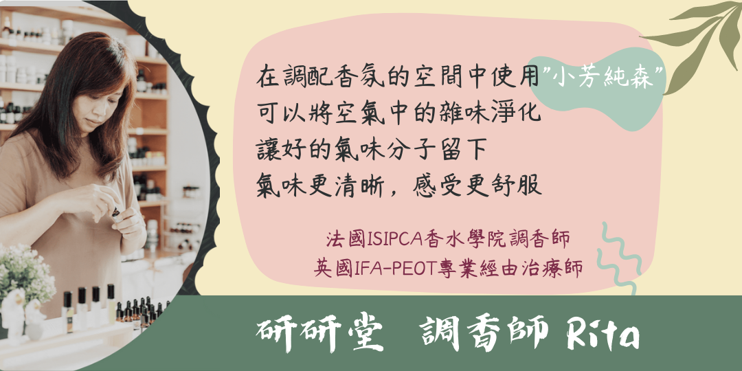 BRISE與研研堂國際香氛師Rita,聯合打造四款精油,"小芳純森"先將容易影響嗅覺的細菌、異味分子分解淨化,讓精油分子能與純淨空氣結合,散發最純淨的植物精油香氛。