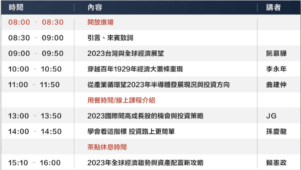 2.本人充分了解本投資講座之主辦單位及相關資訊內容,並同意主辦單位及來賓講師依個人資料保護法之規定,基於本講座之執行、廣告、行銷目的、蒐集處理並利用本人提供之個人資料,截至本人主動請求主辦單位刪除、停止處理或利用其個人資料為止。