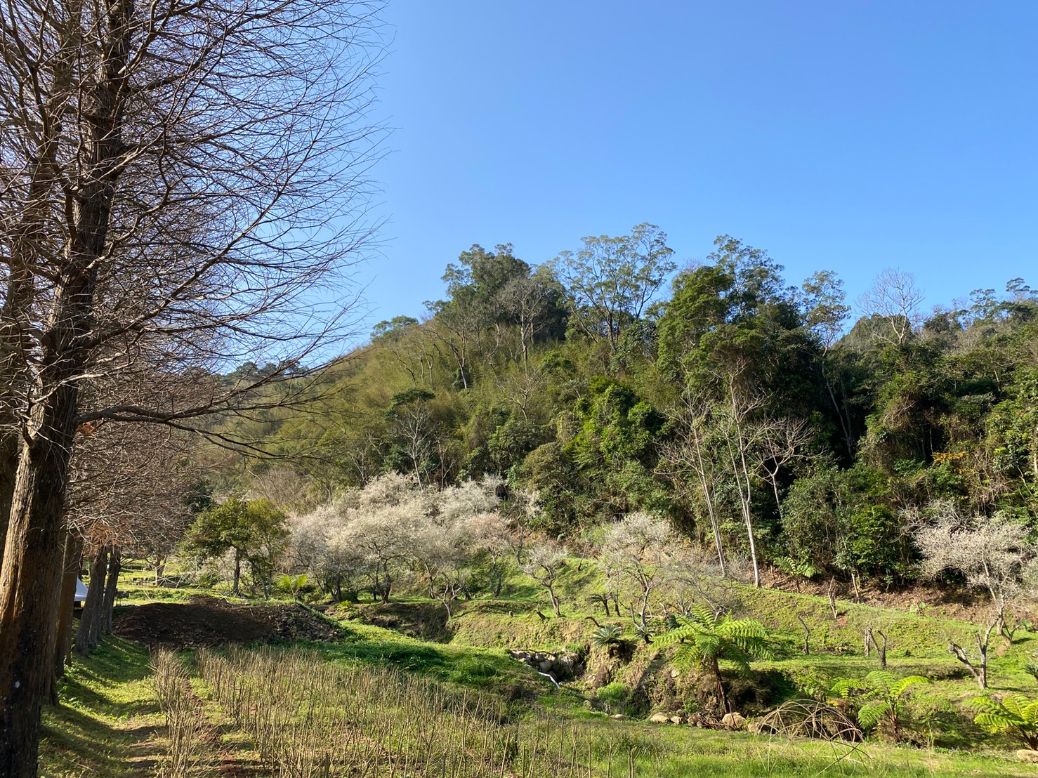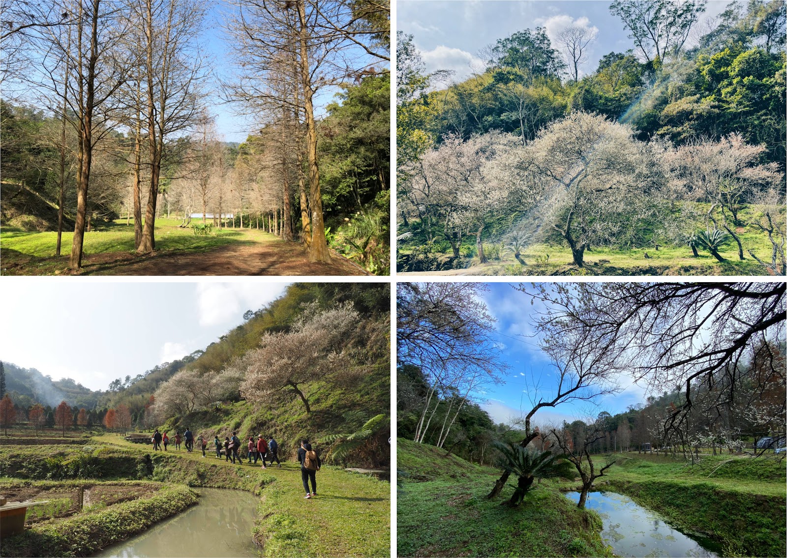 晴天戶外演出場地,右手邊是即將綻放的梅花