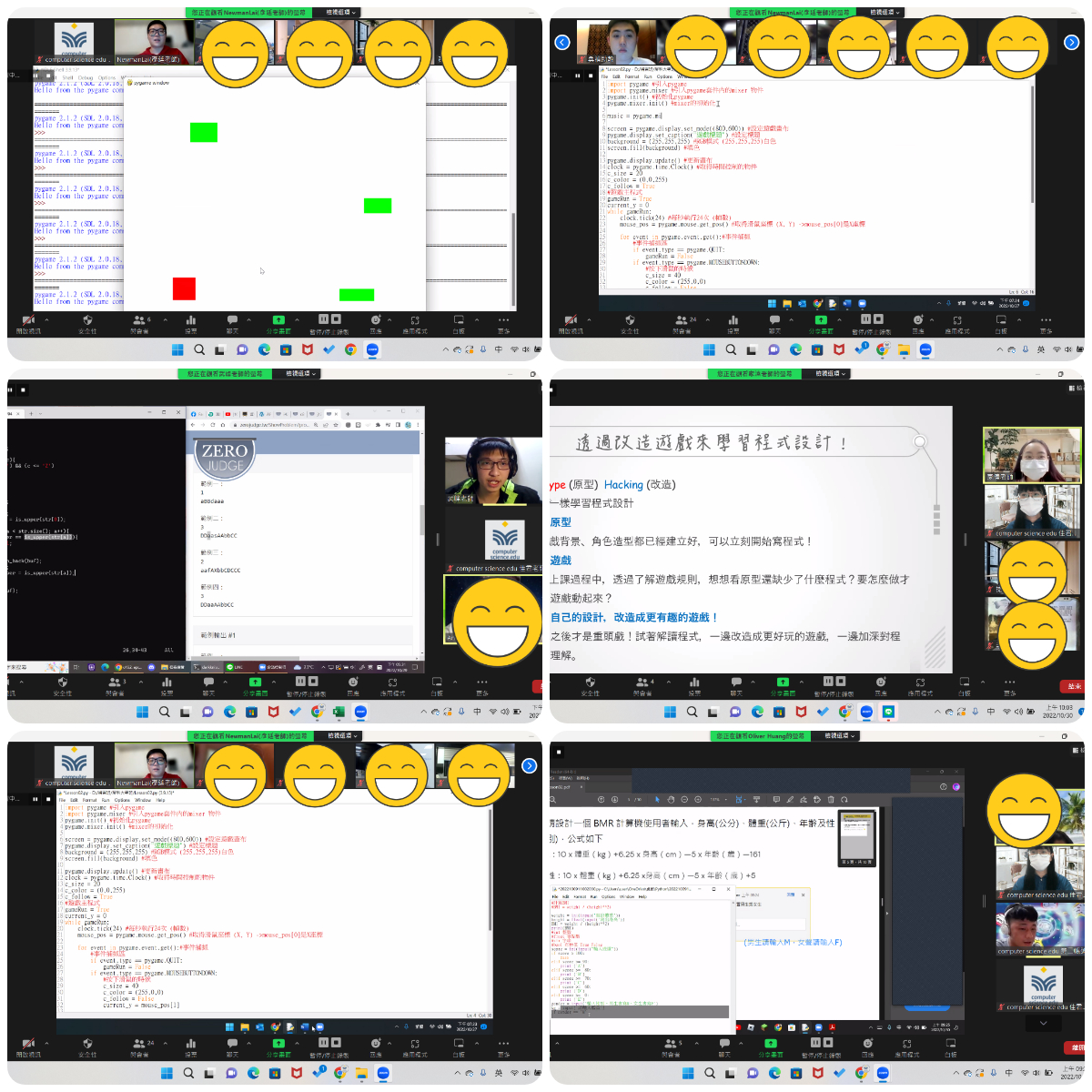 ●遠距線上視訊程式課程,上課使用zoom、google classroom、程式軟體進行,強調互動及實作,孩子遇到程式問題,可以分組討論、分享畫面、遠端操控,班級除主要講師一位,同時搭配相關科系的助教跟課協助孩子。