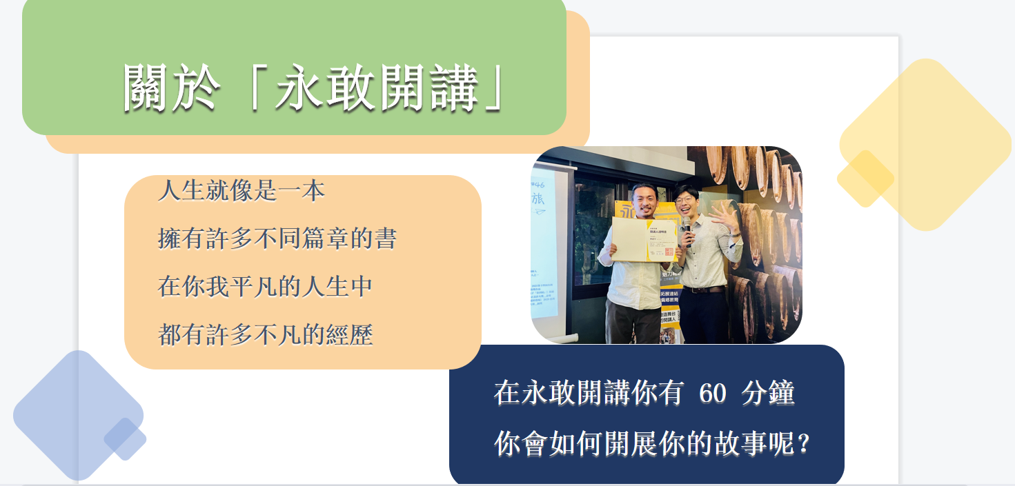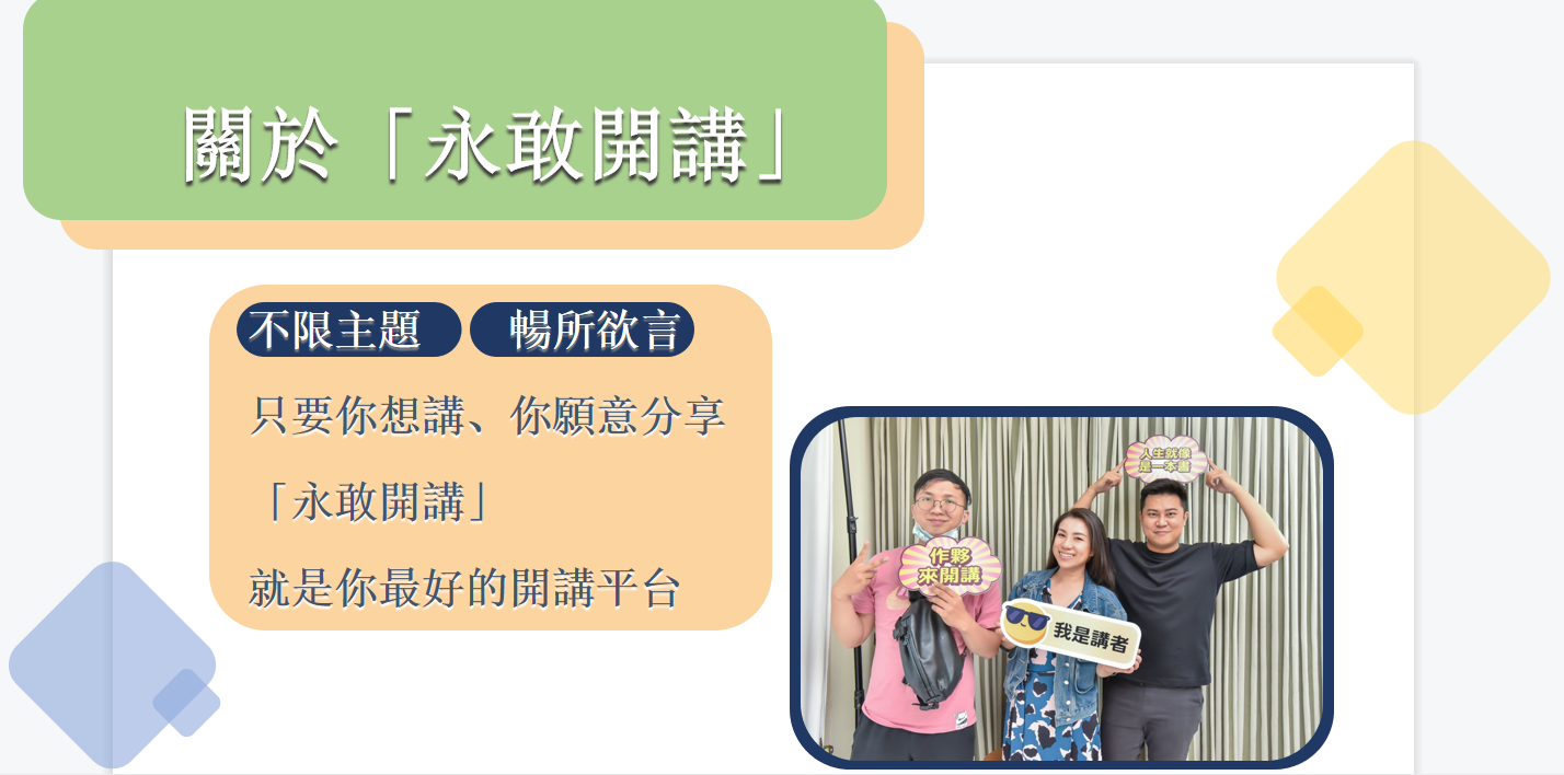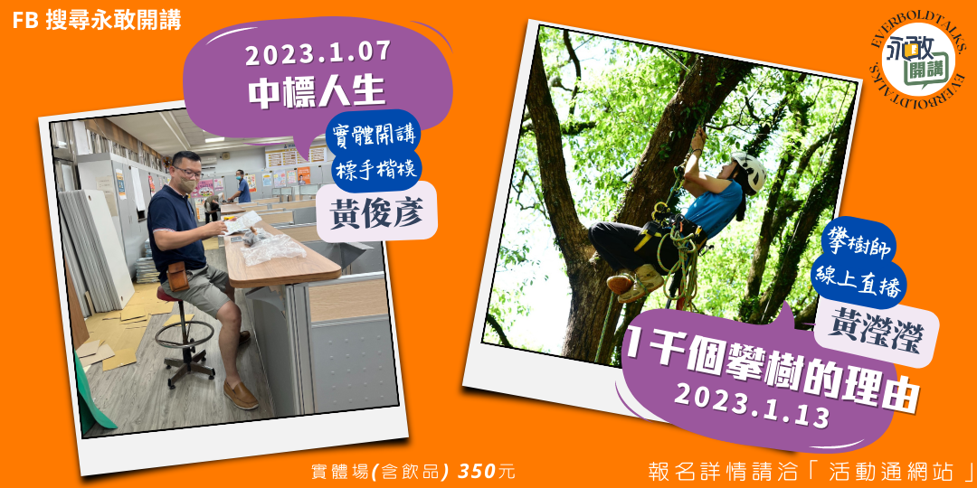本場次免費,當日19:25 於永敢開講FB粉專直播(歡迎結伴線上同行)