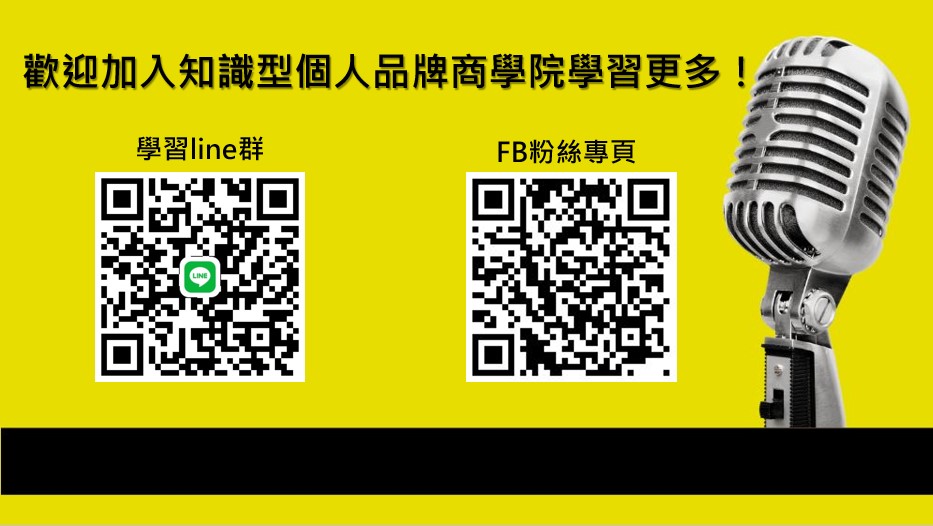 知識型個人品牌商學院學習line群:https://line.me/ti/g/fhnHfv3GKM