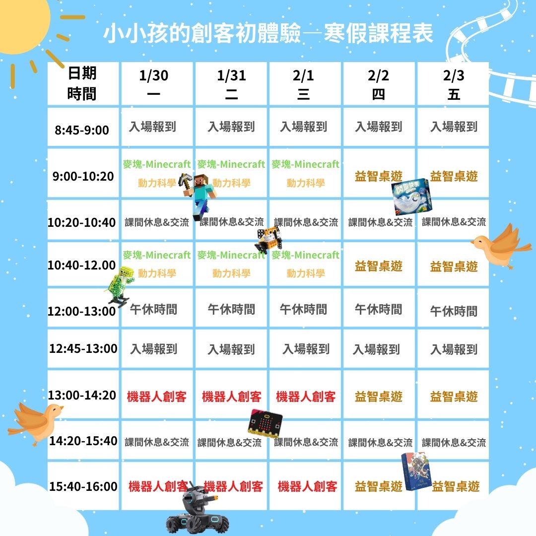 益智桌遊課程:2月2日至2月3日,上午9:00-12:00或下午13:00-16:00