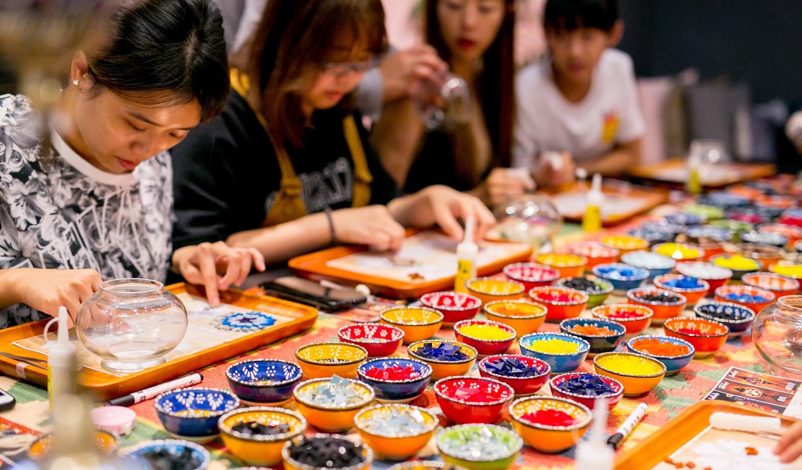 Enjoy making a traditional Turkish lamp that lighten your room with your family, couples or friends Create an everlasting gift for your loved ones with your own creativity or design samples while no experience or prior knowledge required. Enlighten your nights with the traditional Turkish lamp that you build piece by piece by using 12 colors of different shaped hand-cut glasses and beads.