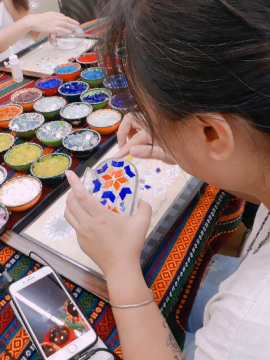 After you finish your work you have to wait for 3 to 4 days to receive your final work. This is because after you finish your lamp, we’ll make a special coating and then let it dry to keep the glass pieces and the beads from falling.