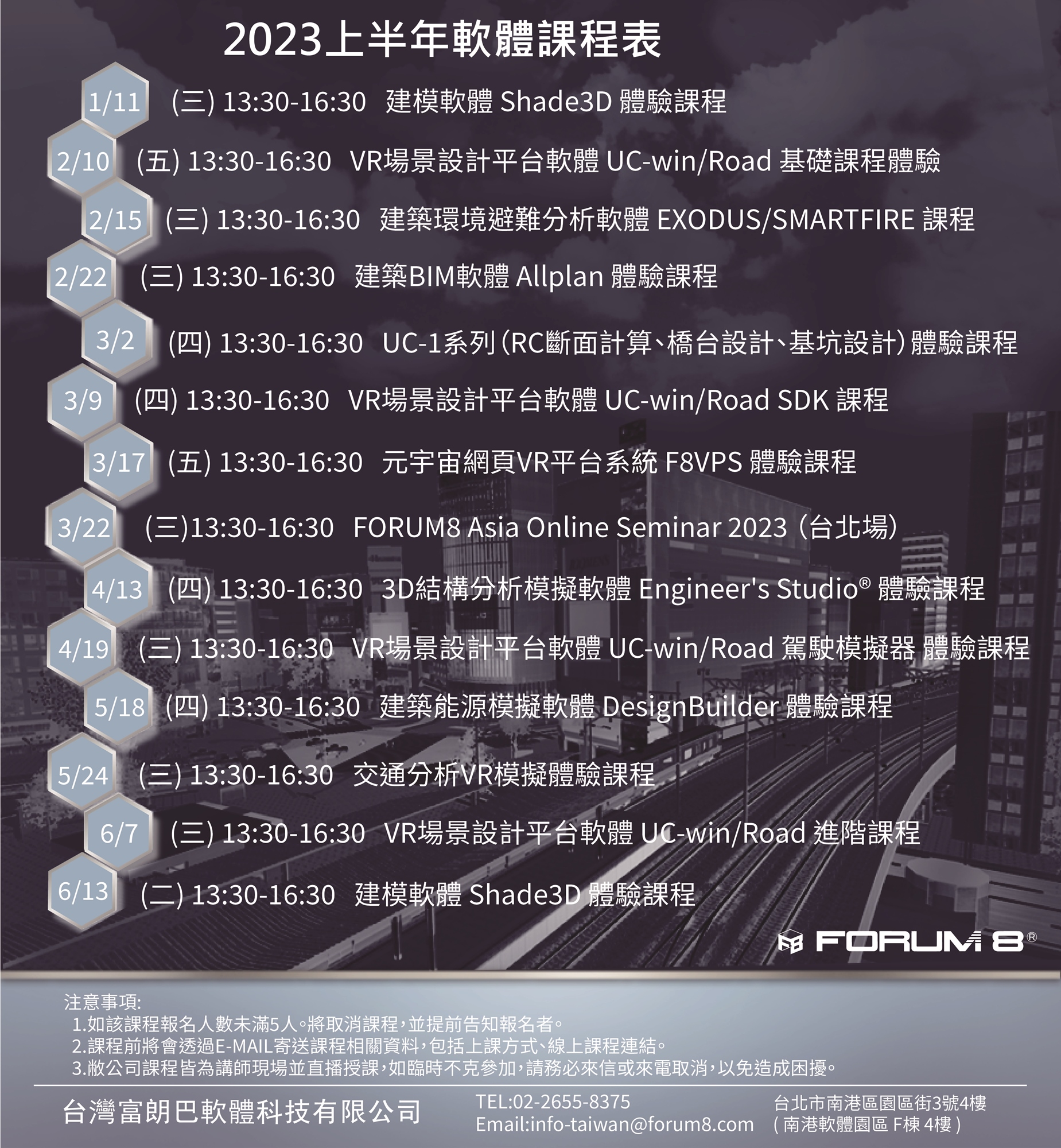 - 如您有其他希望參加的場次,請您E-mail至 info-taiwan@forum8.com,