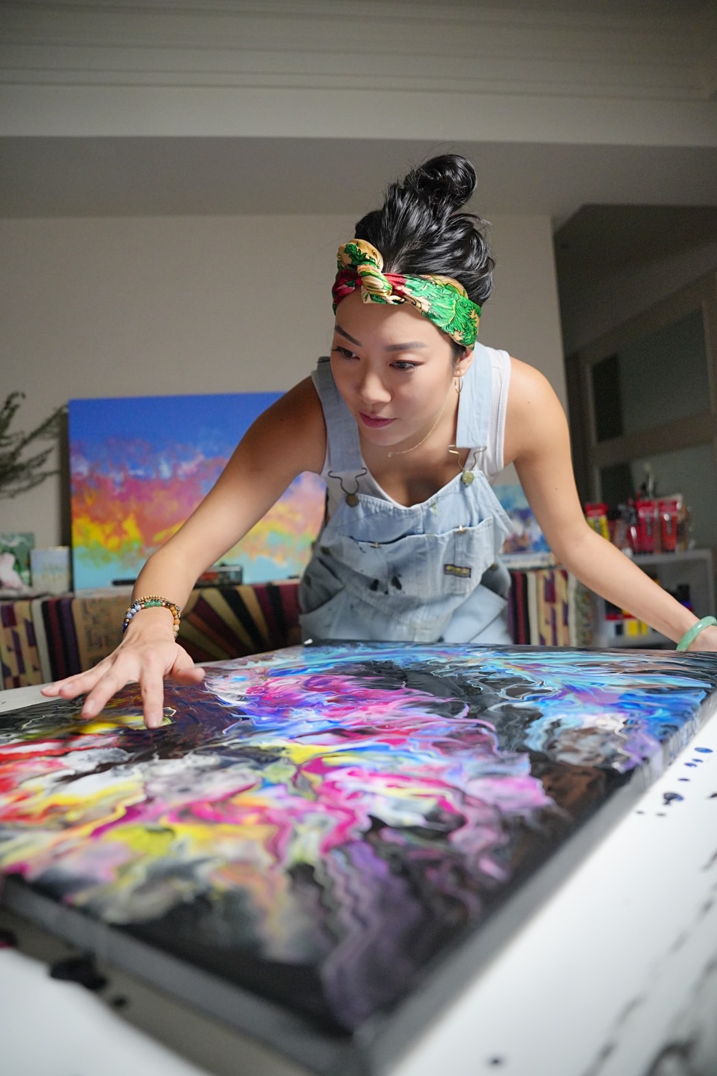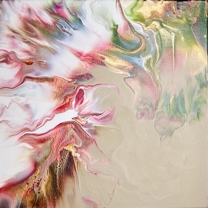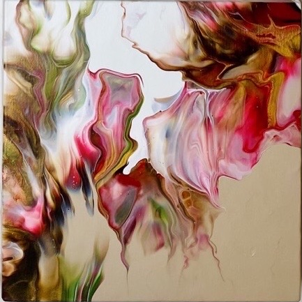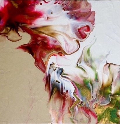 所謂流體畫(Acrylic Dutch Pour),藉著壓克力原料可以流動的特性,加上不同色彩多重的碰撞,產生比油畫或是水彩更強烈的個人風格。