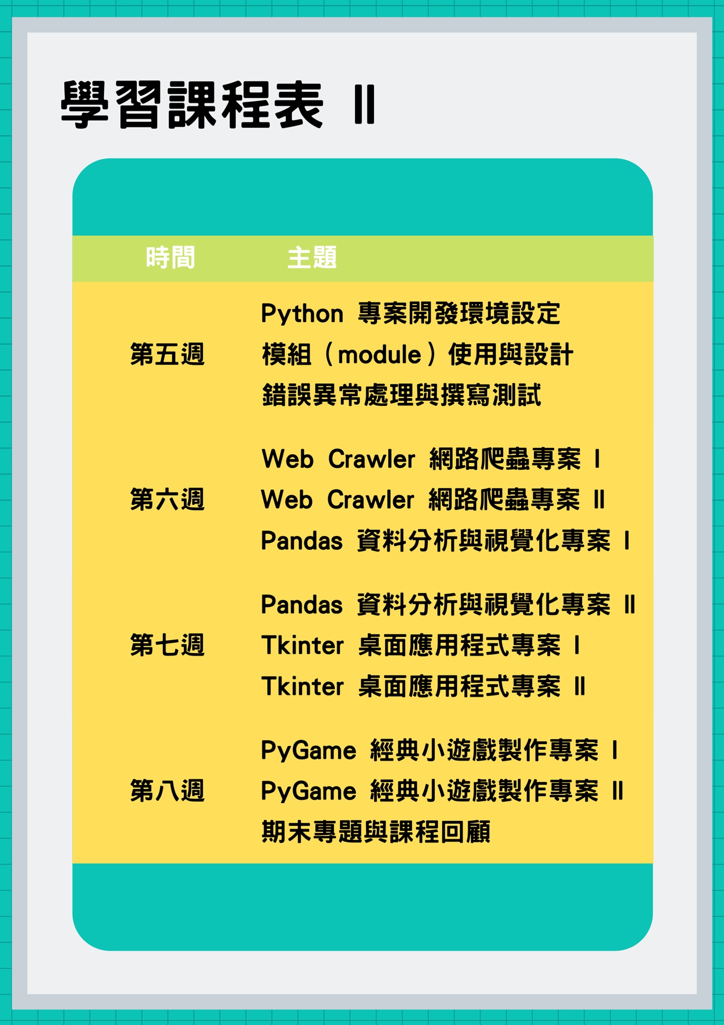 - 建立基本 Python 程式設計觀念和除錯技巧,打好未來學習進階課程基礎