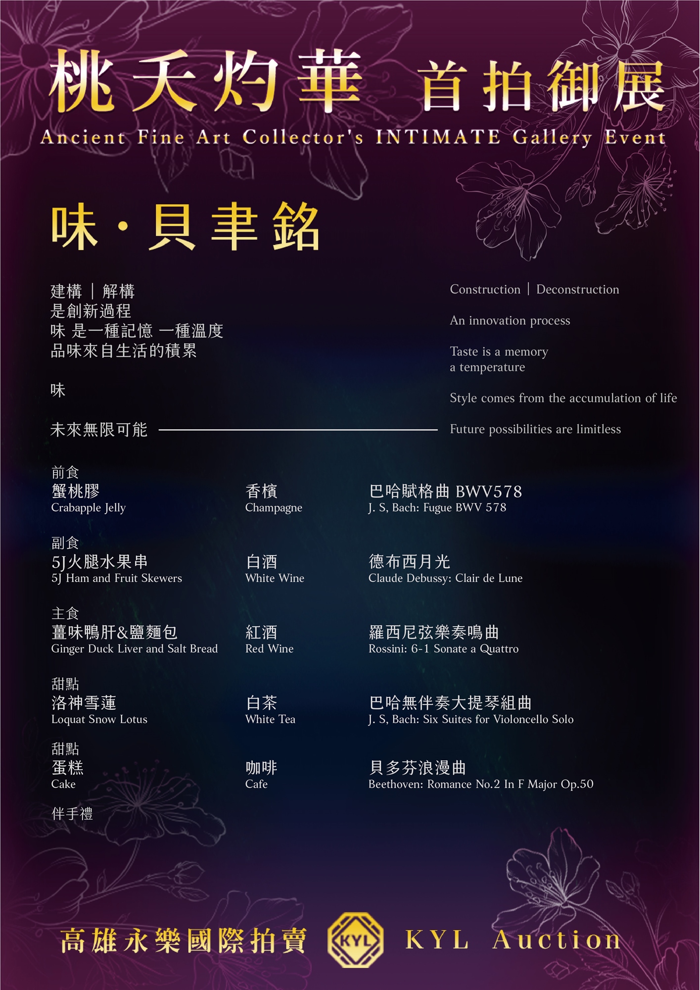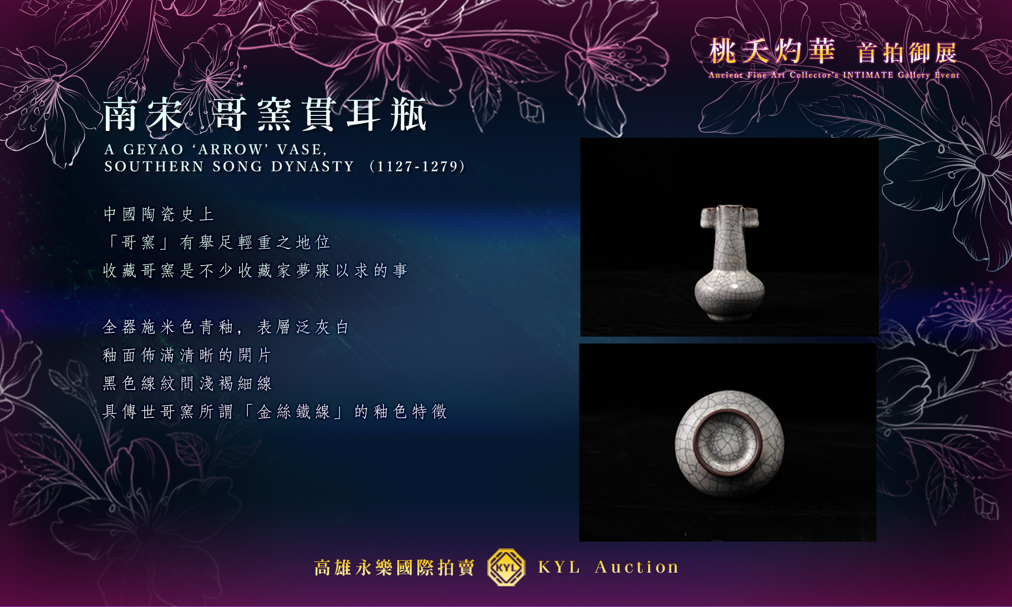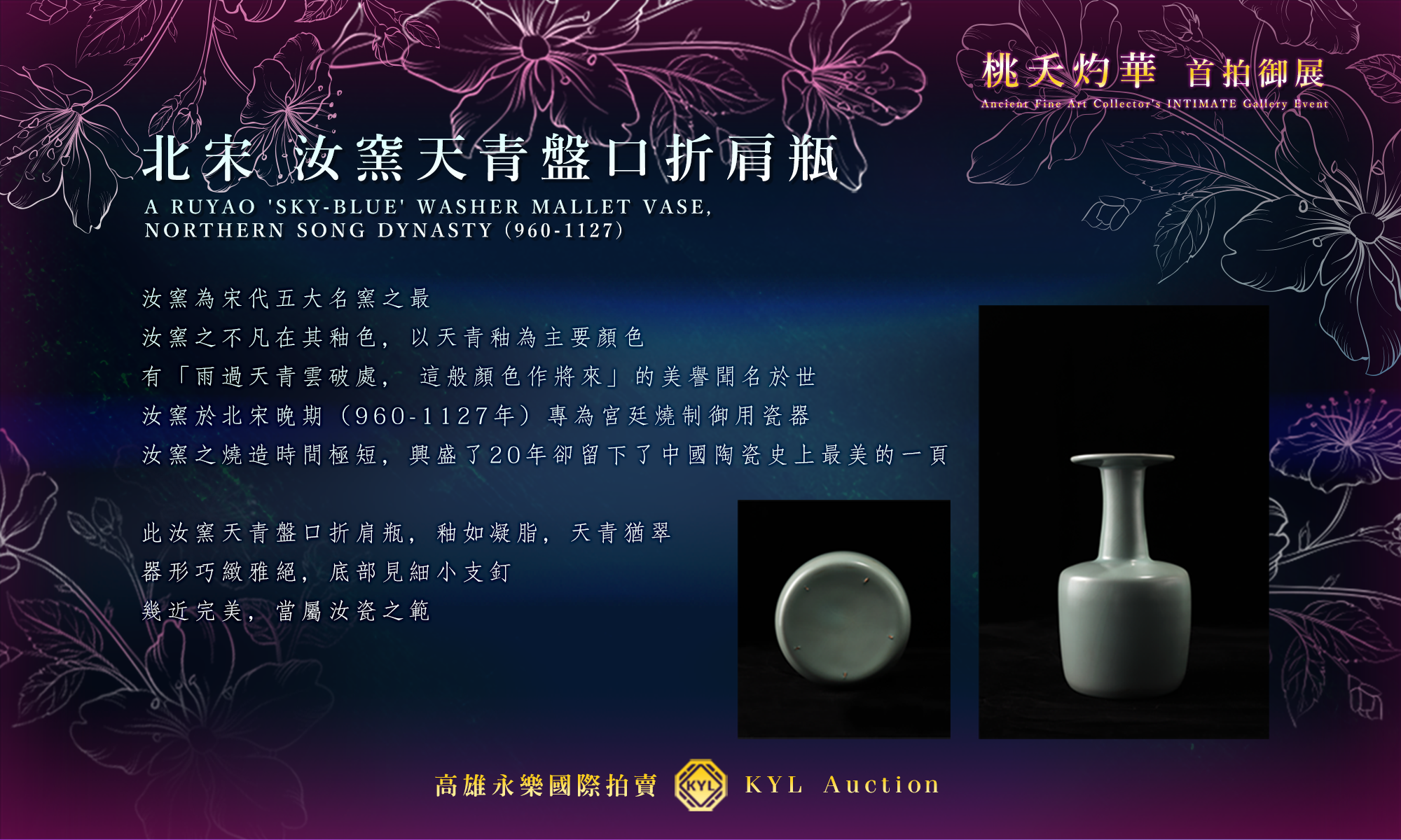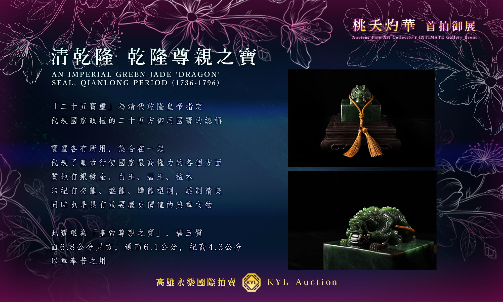 《詩經.周南.桃夭》:「桃之夭夭,灼灼其華。」,艷競盛放桃花之「典藏NFT」,為每件待嫁的中華瑰寶、古藝術品,找尋最真誠的藏家,令其有了圓滿的歸宿;「之子于歸,宜其室家」深表高雄永樂國際拍賣最衷心的祝福!