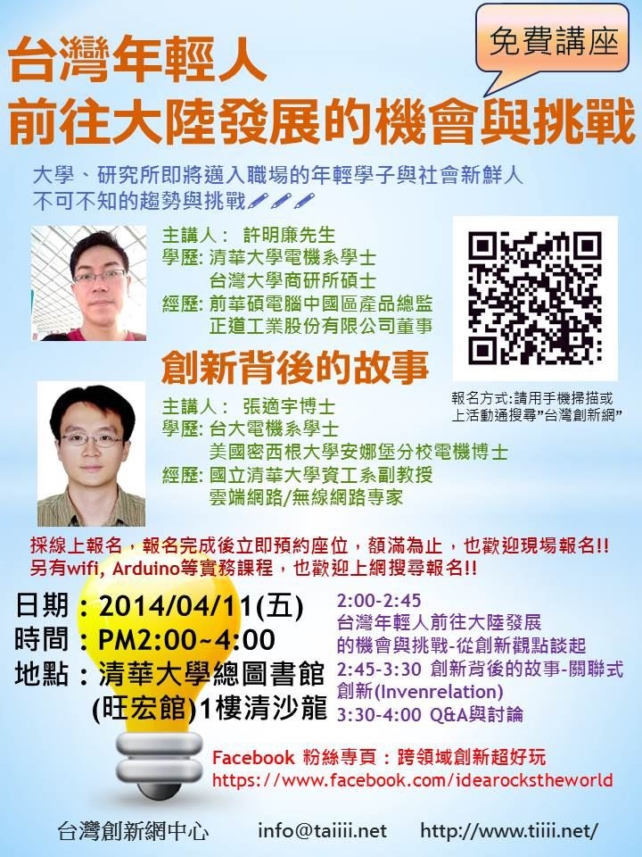 [免費講座]台灣年輕人前往大陸發展的機會與挑戰
