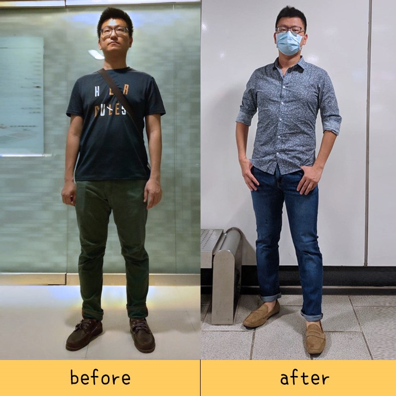 當然擁有標準身形加上合宜的穿搭絕對是加分的,不過根據我所服務過的顧客,即使是體重近百,又或是跟我一樣差不多高和偏瘦體型(我身高164,體重52),都還是能透過穿搭來改變外在形象,讓自己充滿自信與給人得體的印象,當然在身材有大幅改變後,衣服是需要重新購買沒錯,但在過渡期間能與有良好視覺形象,也是件很棒的事對吧?