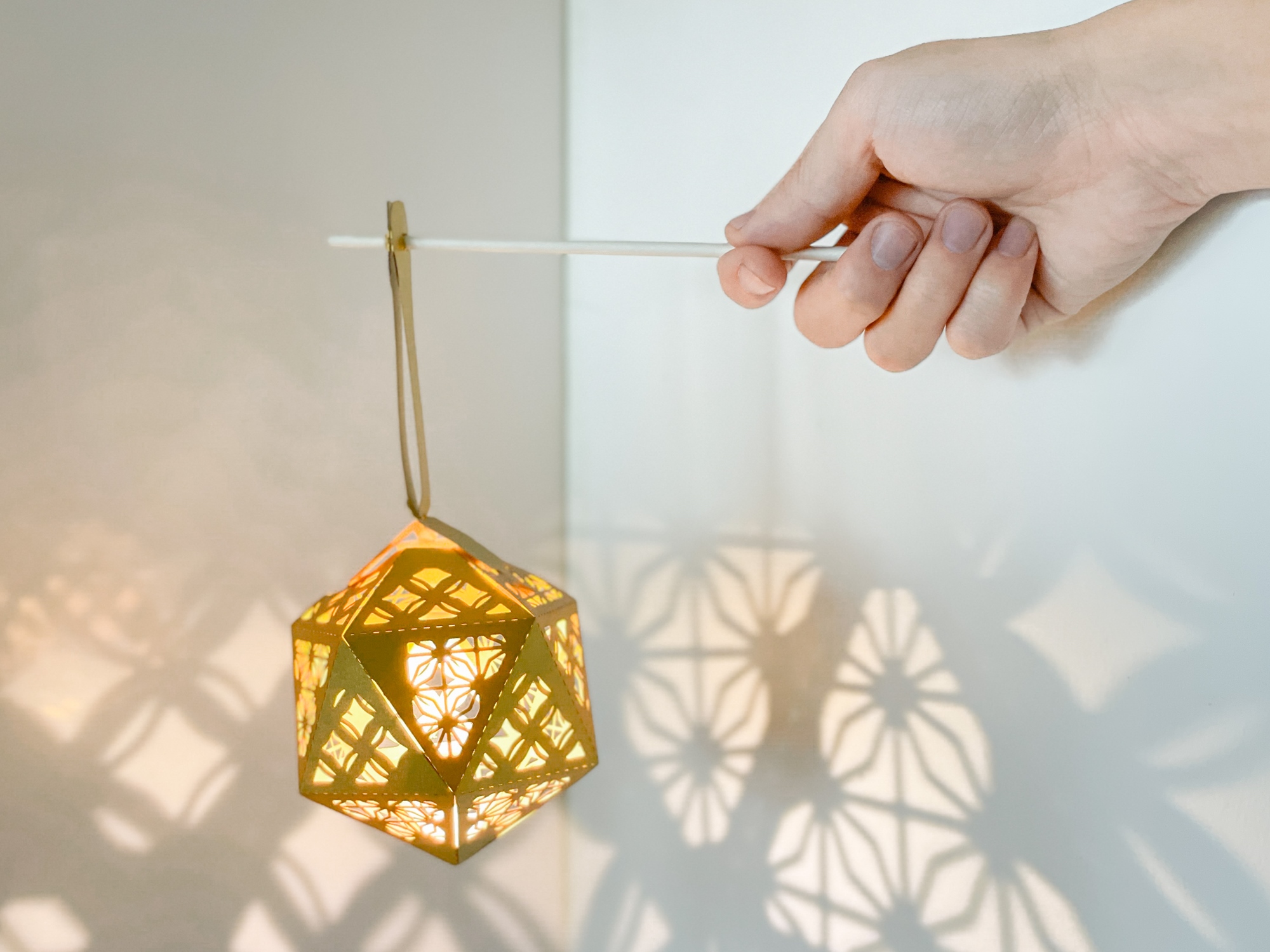 窗花球本身為正二十面體,擁有精煉的幾何美感,紋飾則挑選了台灣窗花紋中的「北極星紋」與「銅錢紋」,分別象徵「文化」與「財富」。