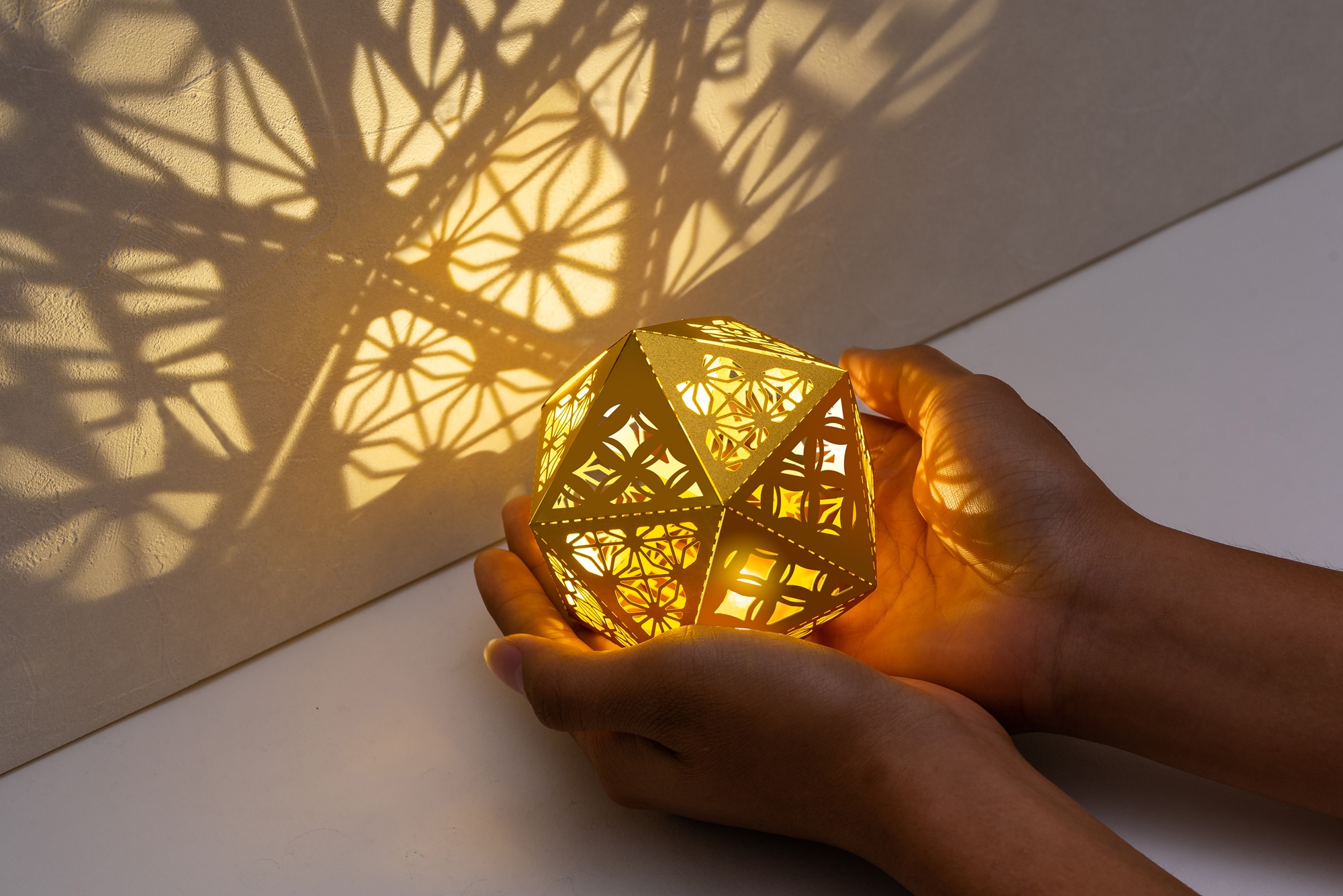 傳統的剪紙藝術,教我們如何改變觀看角度,學會欣賞負空間。同樣的概念,窗花球使用鏤空技巧,讓球體上的窗花紋與光互動交疊,伴隨不同場域幻化各種光影效果。
