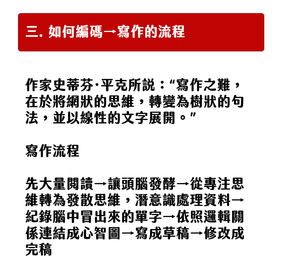 ● 如何確保你在寫文章時……不會東漏西漏…..總覺得還有哪些觀點沒講到……而是有個完整的架構(有一個好用的工具能幫你做到這一點。)