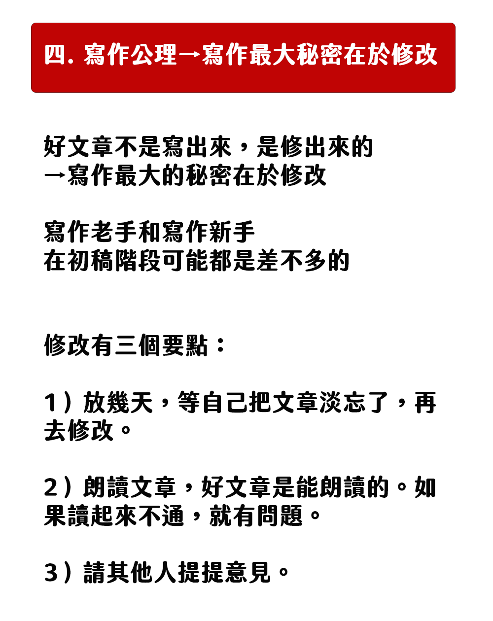 ● 如何像專業作家一樣……自己擔任自己的編輯…..該依據什麼原則……來修改文章(我保證這些原則大多數的作家連聽都沒聽過。)