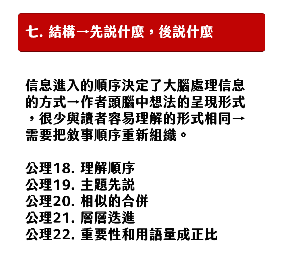 ● 如何把文章素材…….按照讀者腦子的理解結構……來做編排……什麼先說,什麼要後說!
