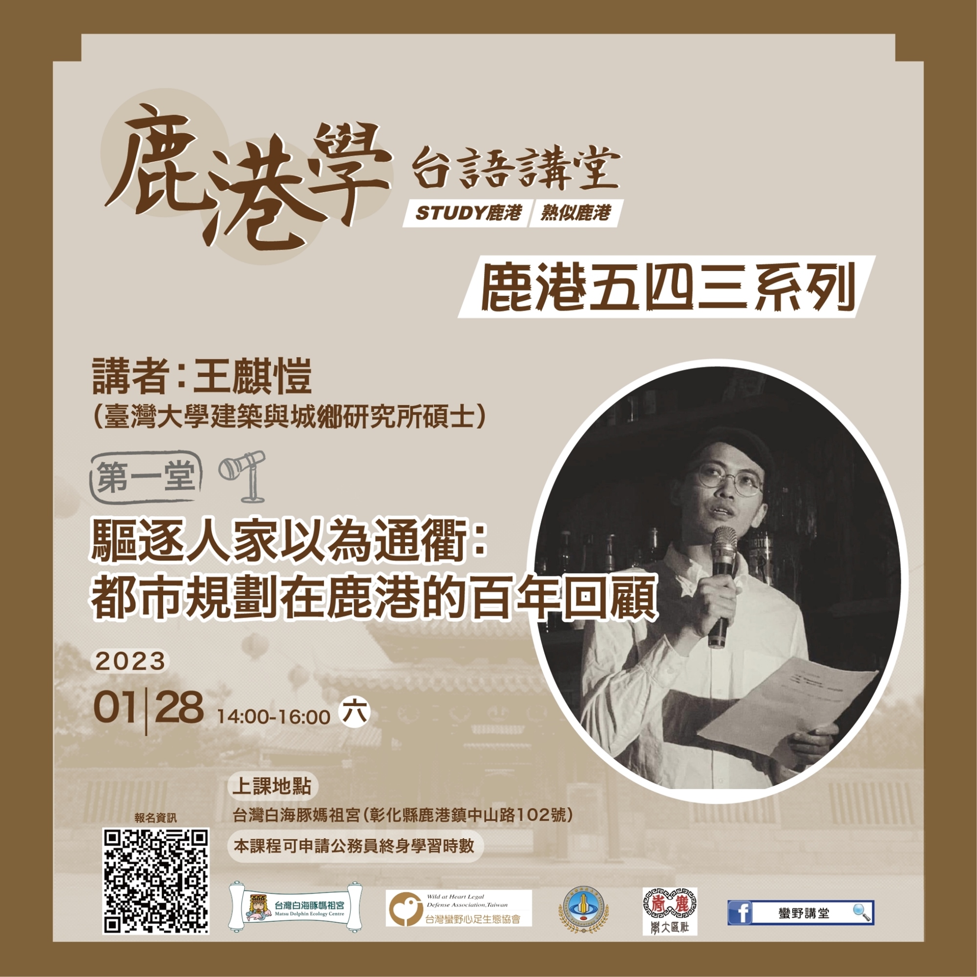 ※講題:《鹿港五四三系列》第一講:驅逐人家以為通衢:都市規劃在鹿港的百年回顧