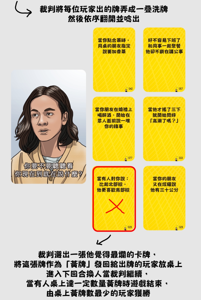 💥當天將玩最新上市出版的《梗圖黃牌》,也就是所謂圖片版的《黃牌》,將收錄台灣最流行的迷因梗圖,你可以為這些迷因圖下一個最好的註解!將會製造出意想不到的爆笑火花,也會得知你身邊朋友瘋狂又超乎常理的想法!