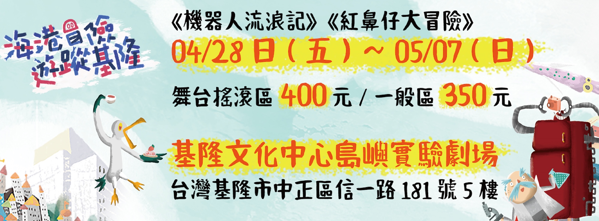 《海港冒險,遊蹤基隆》將帶給觀眾多場次、多劇目的親子劇場娛樂,包含尋找自我冒險的故事《機器人流浪記》、由台灣民俗傳說「好鼻師」轉譯的《紅鼻仔大冒險》,以及關心環境生態的《最棒的種子「阿甘」!》、和刻畫眷村文化的《水底寮圖書館》。