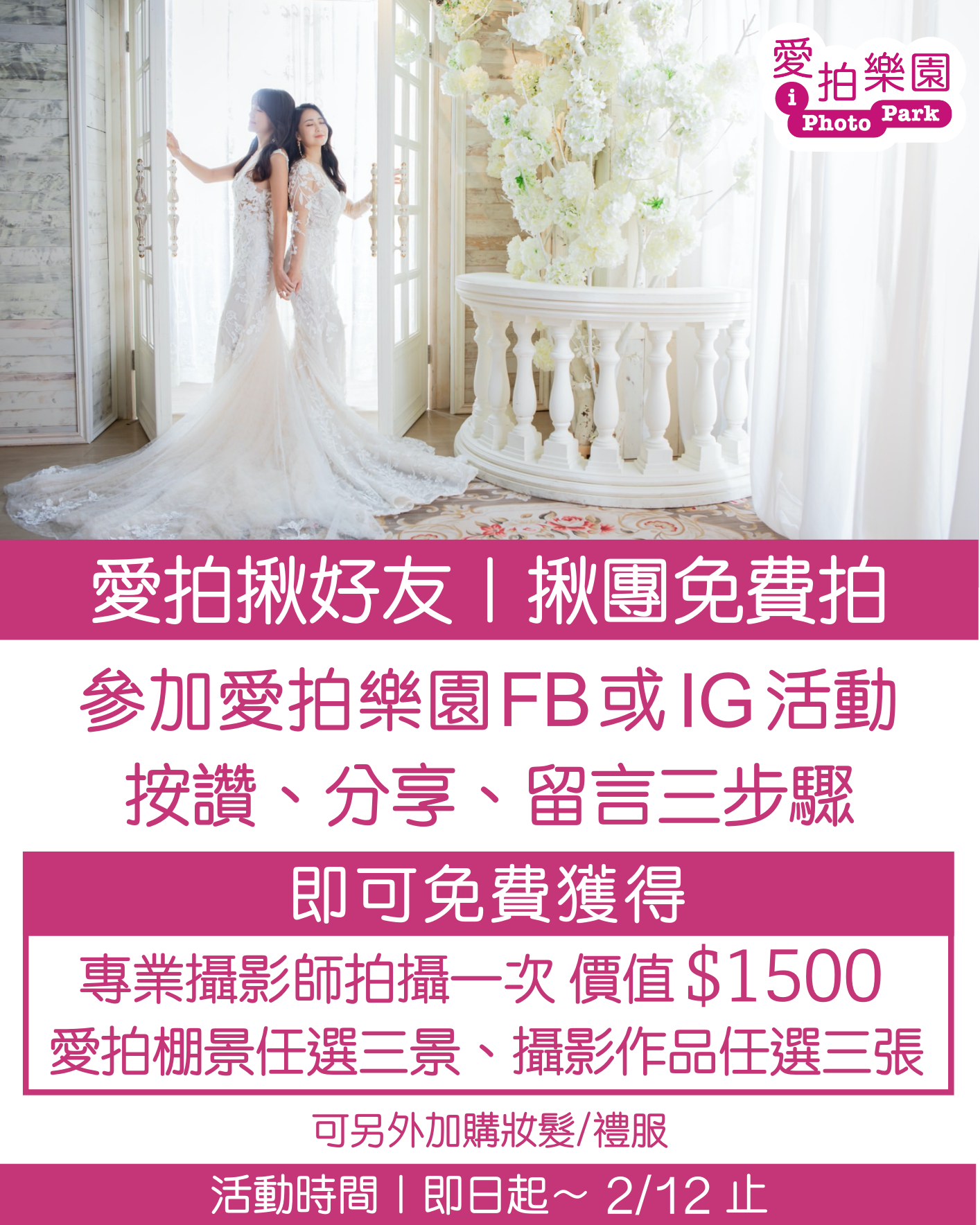 完成臉書或是IG三步驟,即可獲得免費專業攝影師拍攝一次。