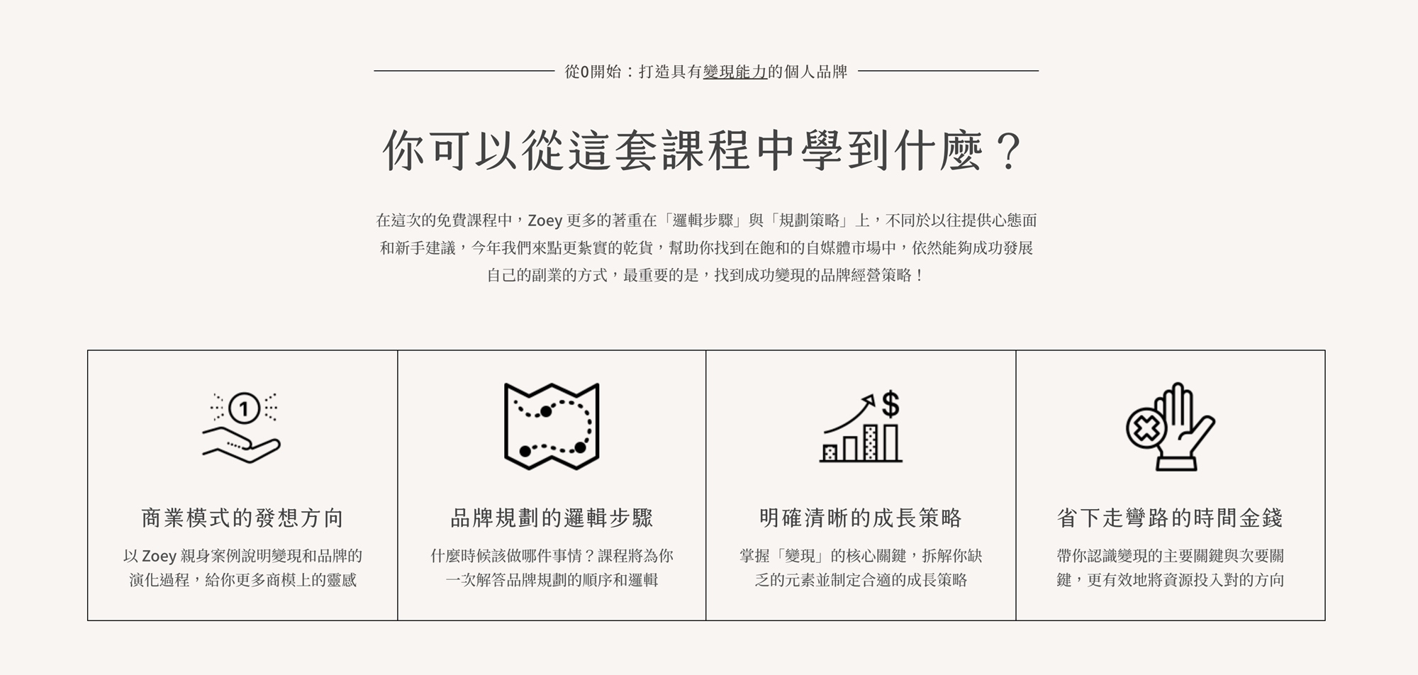 以 Zoey 親身案例說明變現和品牌演化過程,給你更多商模上的靈感