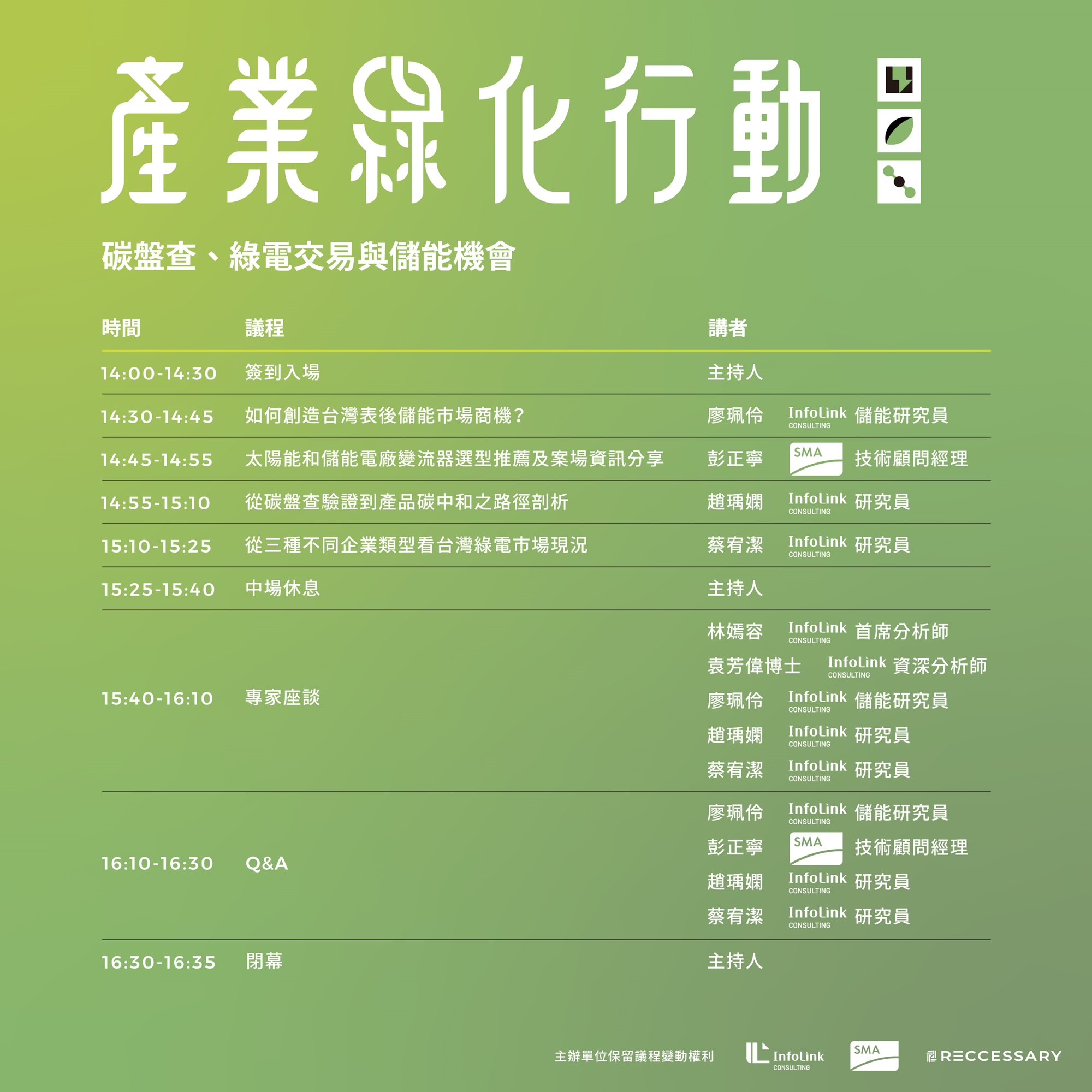 本次活動將於會後進行專家座談,打造跨產業對話交流平台,歡迎事前將相關問題填寫於表單,我們將於座談時段回覆討論。提問表單:https://forms.gle/YVJfQSPggUhp1KjR7