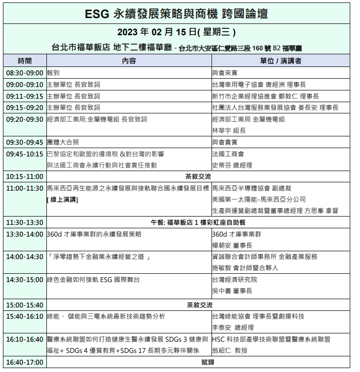近年來各種不同類型ESG論壇橫空出世,不同主辦單位關注重點皆有所差異,但直接邀請到跨國東南亞與歐洲,及跨領域產、官、學、研等專家學者,齊聚一堂分享最新ESG 永續發展策略,SDGs 議題倡議,節電減碳解決方案與補助方案,綠能科技與再生能源最新技術趨勢,及綠色金融市場趨勢分析等等。