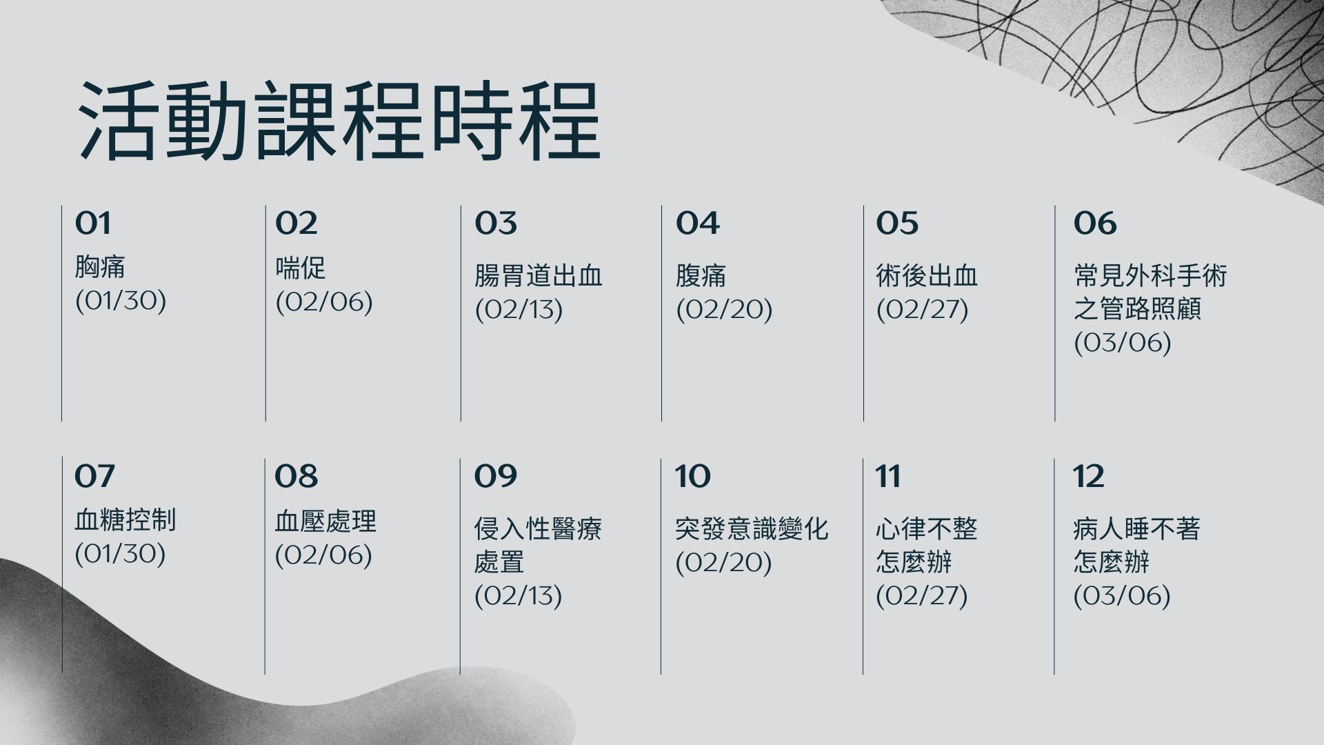 - 課程採線上方式進行 (不限時間、地點),活動開始時間釋出課程內容