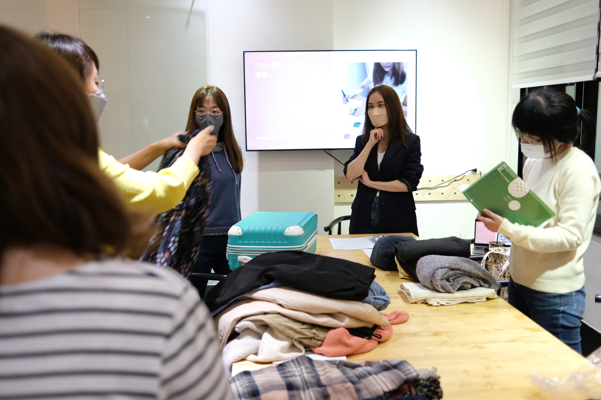 團體課是偏理論型的學習與概念的解說,搭配少量的隨堂練習(使用學員帶來的衣服),上完課之後仍需要花時間將理論轉換為實踐,去挑選服裝和建構自己的衣櫥。