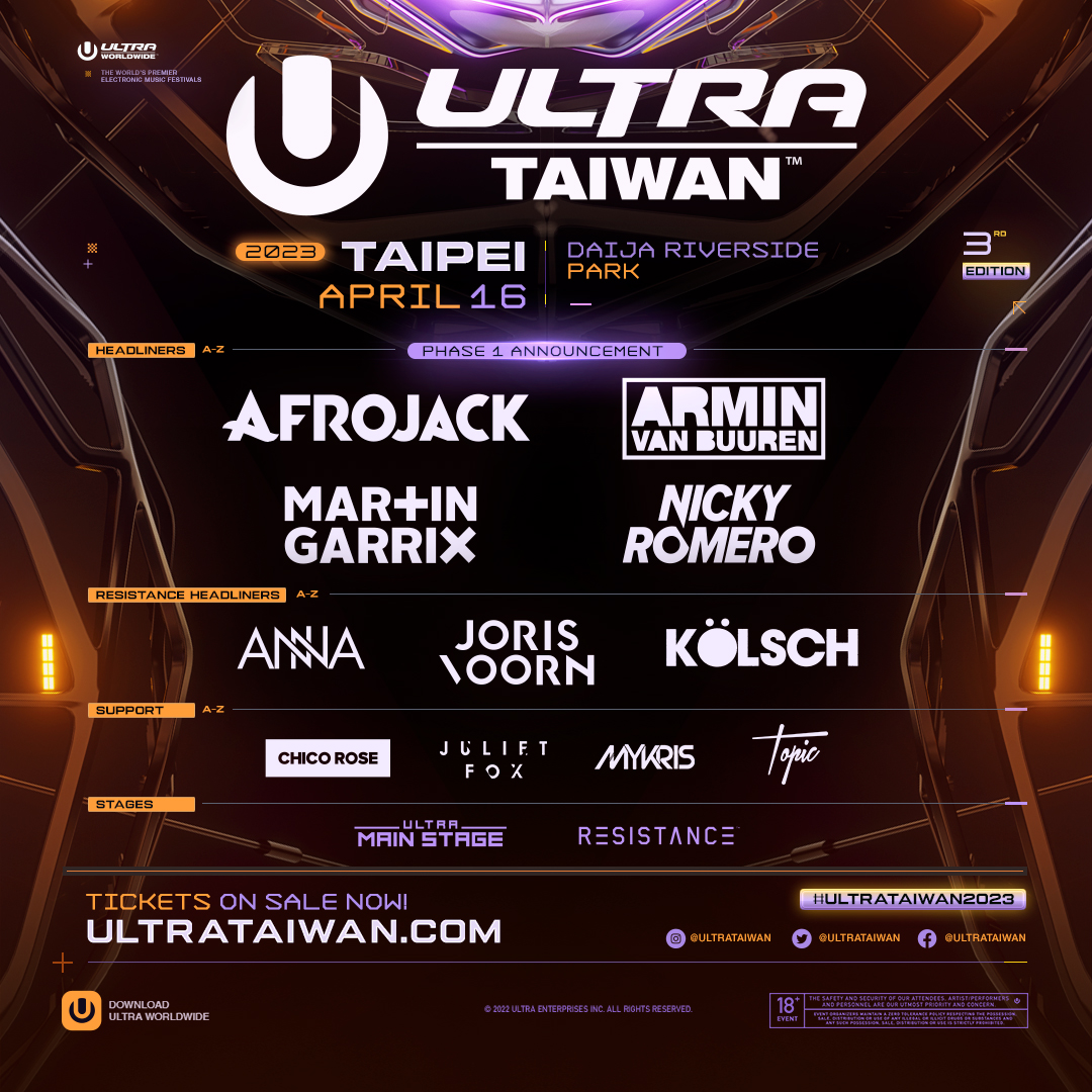第二屆 2023 ULTRA TAIWAN 將於 4 月 16 日盛大登場!邀請你來感受世界第一的音樂節魅力,一同見證最耀眼的時刻!Ultra Taiwan 將由 Ultra Music Festival 世界知名設計團隊打造的頂尖舞台,並結合多種音樂曲風及聲光特效,提供給各位最頂級的視覺及聽覺饗宴!