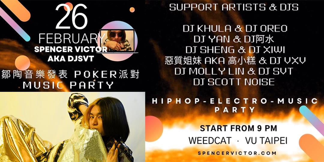 鄒陶Spencer Victor首位亞裔美籍藝人與Lady Gaga電音製作人DJWS合作歌曲-Pussy,中西合併創作風格,結合台灣本土地下尖端電音陣容,成員亦有來自上海,引領新生代藝術家衝出台北,響應國際,蘊涵豐富多樣可能性的夜晚,一同享受信義區罕見面貌,千載難逢,錯過不再。