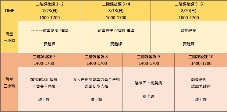 2.第二階段課程:每堂3小時、18小時實體課+12小時線上課,總計30小時。