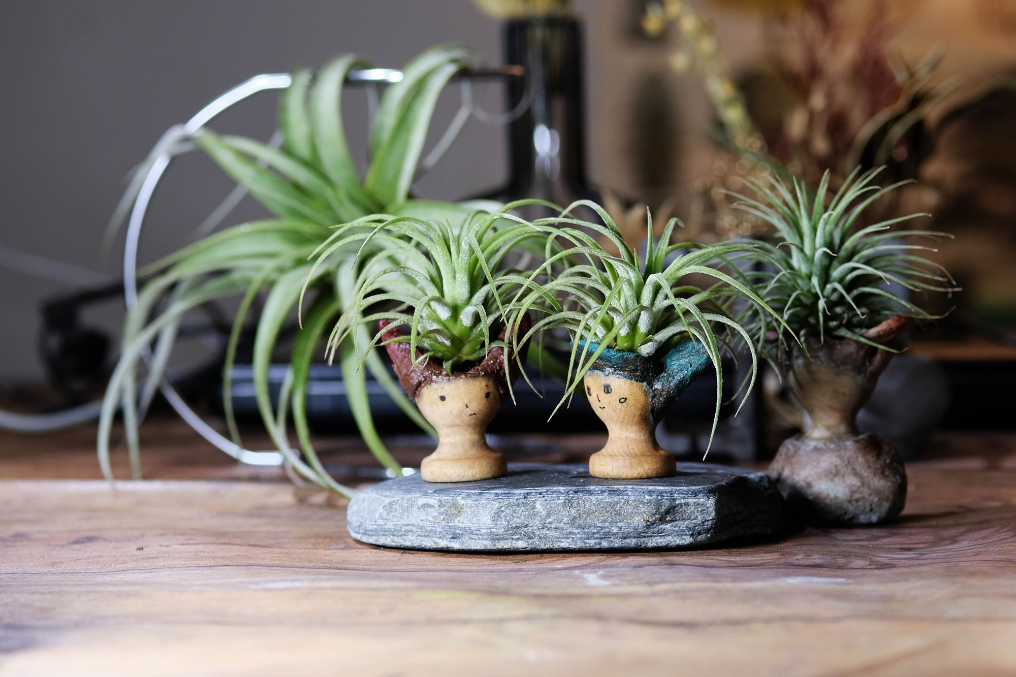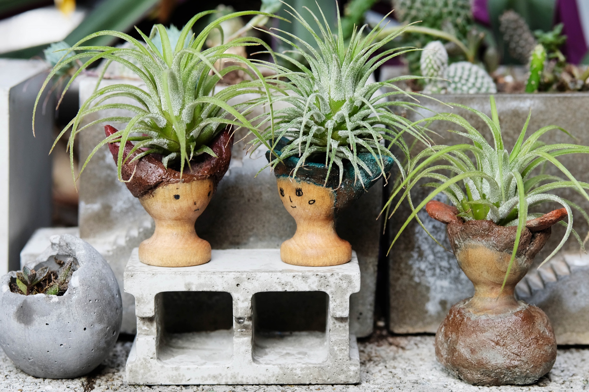 如果你想在房間裡,擺一顆簡簡單單的植物,空氣鳳梨與水泥小木人的組合,就會是很適合的搭配。