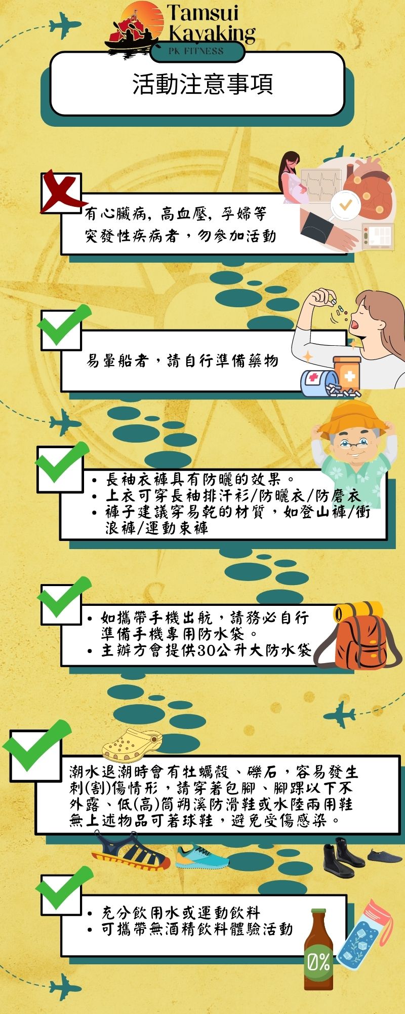 ✦ 所需設備及防水包 均由主辦方準備