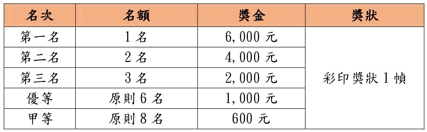 柒、競賽獎勵