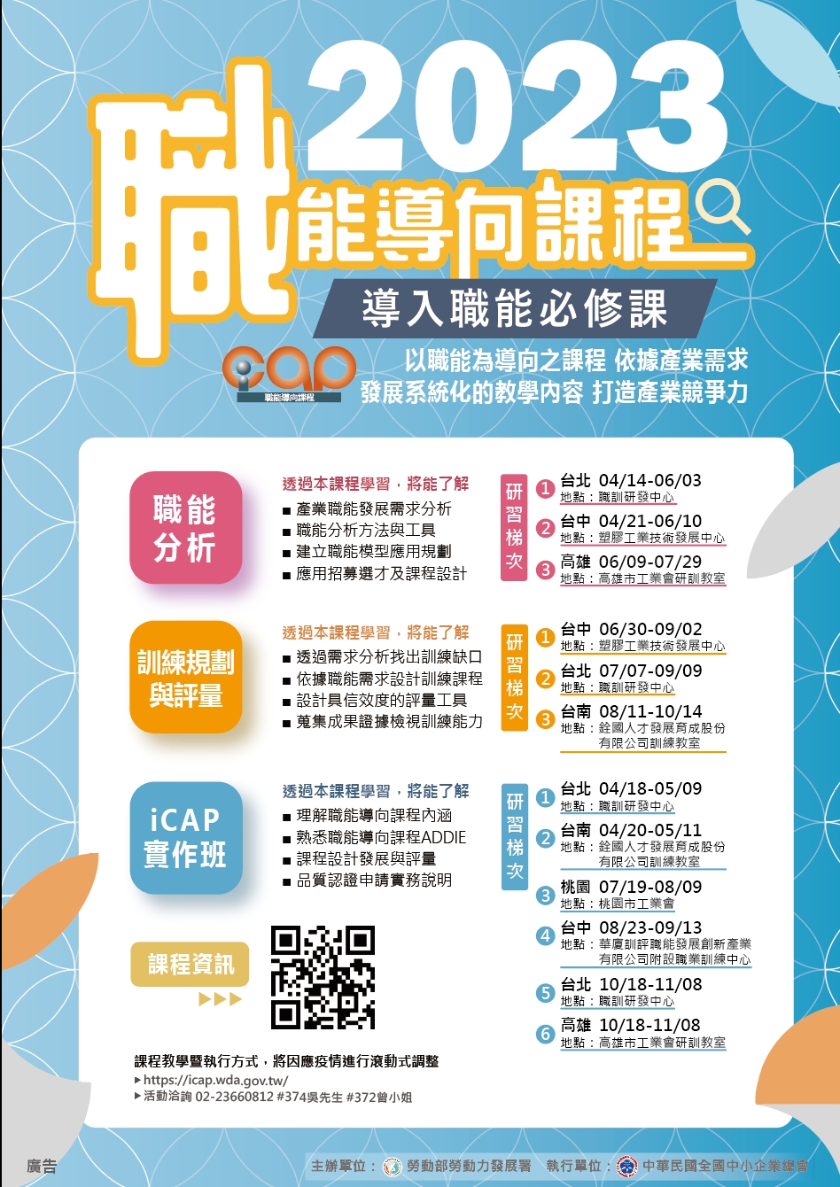 iCAP實作班 研習梯次 | 地區 | 研習日期 | 報名受理及截止日期 |