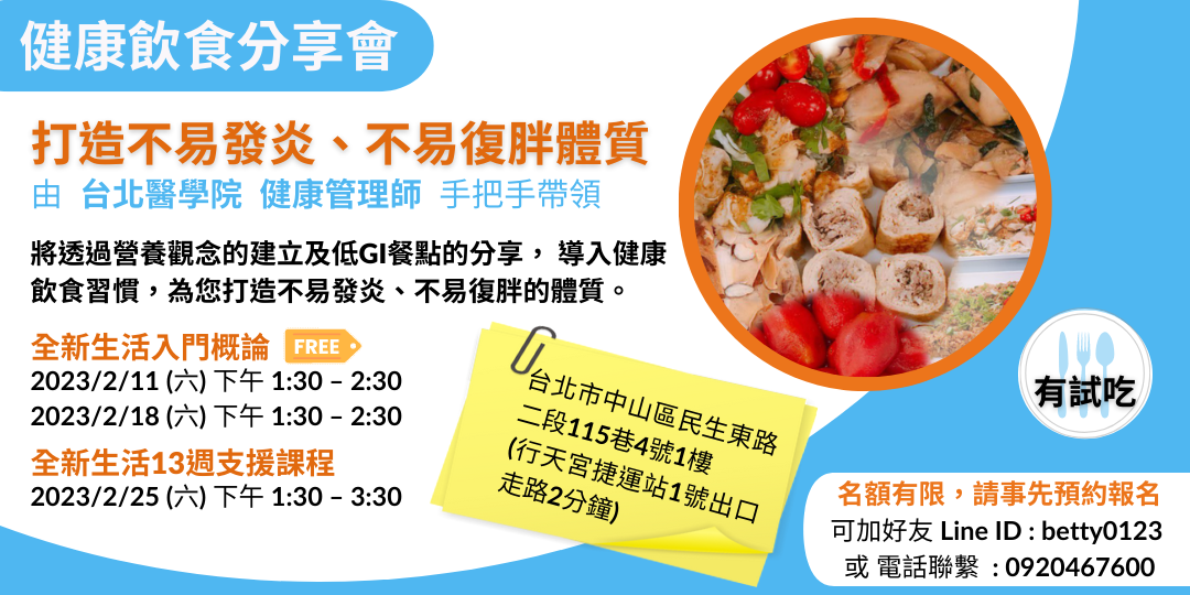 ⛅ 武漢肺炎疫情全球肆虐,除了個人防護之外,如何提升免疫力及照顧家人的健康刻不容緩,我們將將透過營養觀念的建立及低GI餐點的分享,帶大家學習如何正確而健康的飲食習慣🍜,如何不需少吃,一樣可以吃得好、吃得健康🍵,而意想不到的附加價值就是順道調整您及家人的體質及窈窕的身材, 為您打造不易發炎、打造不易復胖的體質,一舉多得,千萬別錯過,請先報名喔 🌻
