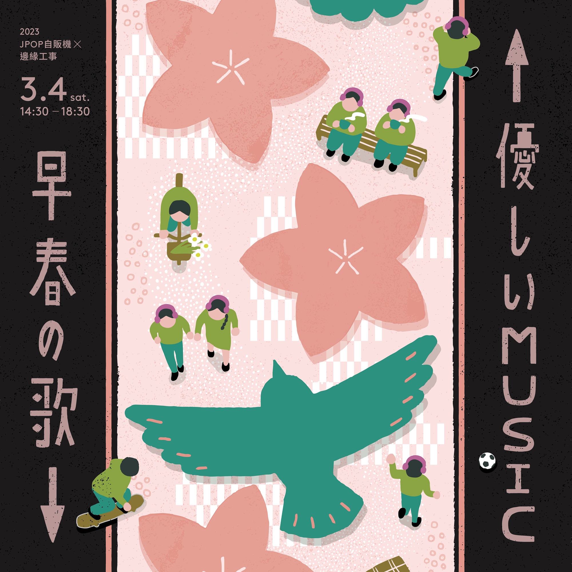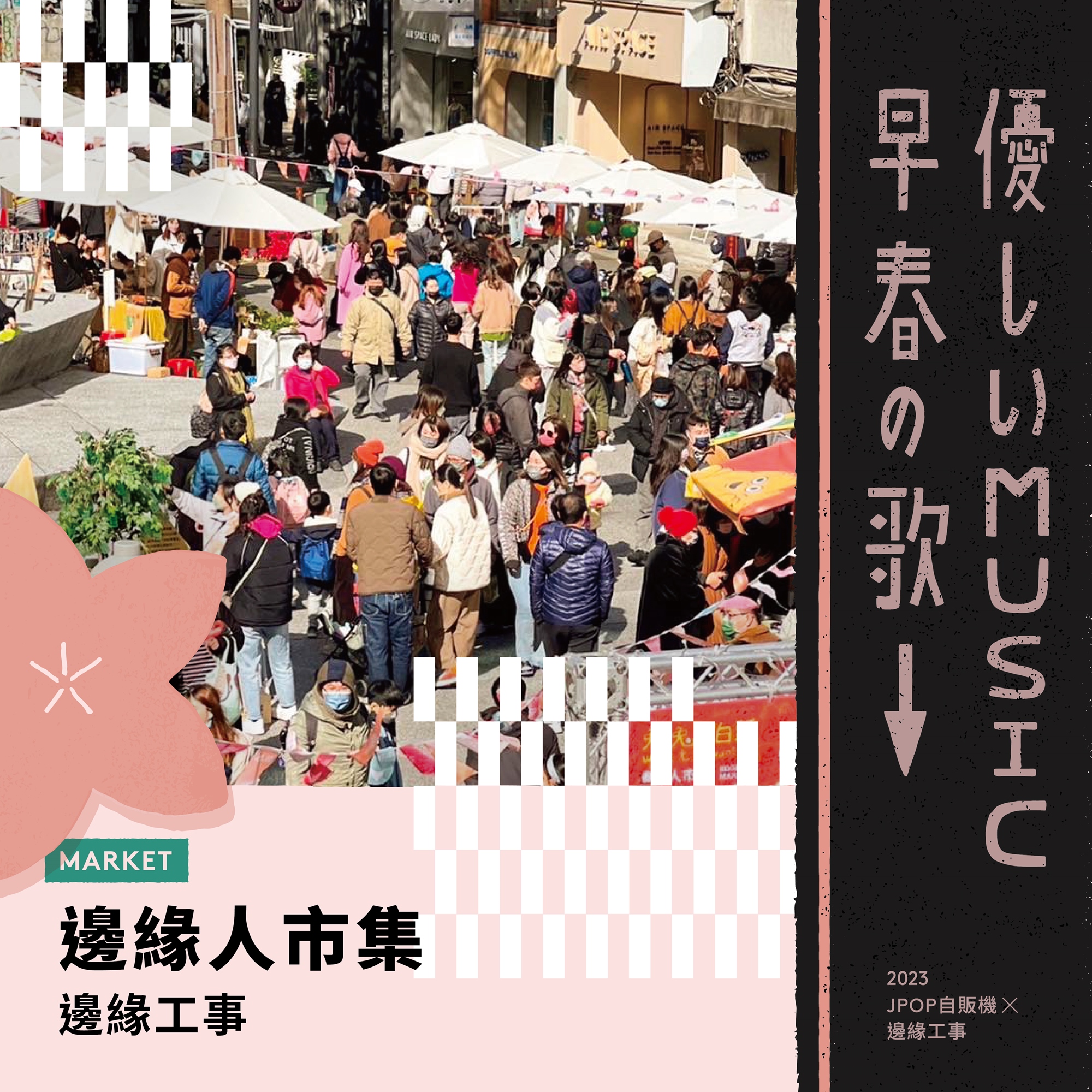 這次我們挑選以 Mr. children 、Spitz、羊文学的調性作為音樂基底,耳機裡收聽著舒服清新的搖滾,另外邀請DJ Katsuno(太空猴宇宙放送局)帶來特選Mixtape,來邊緣人市集享受個舒服的早春午後吧!