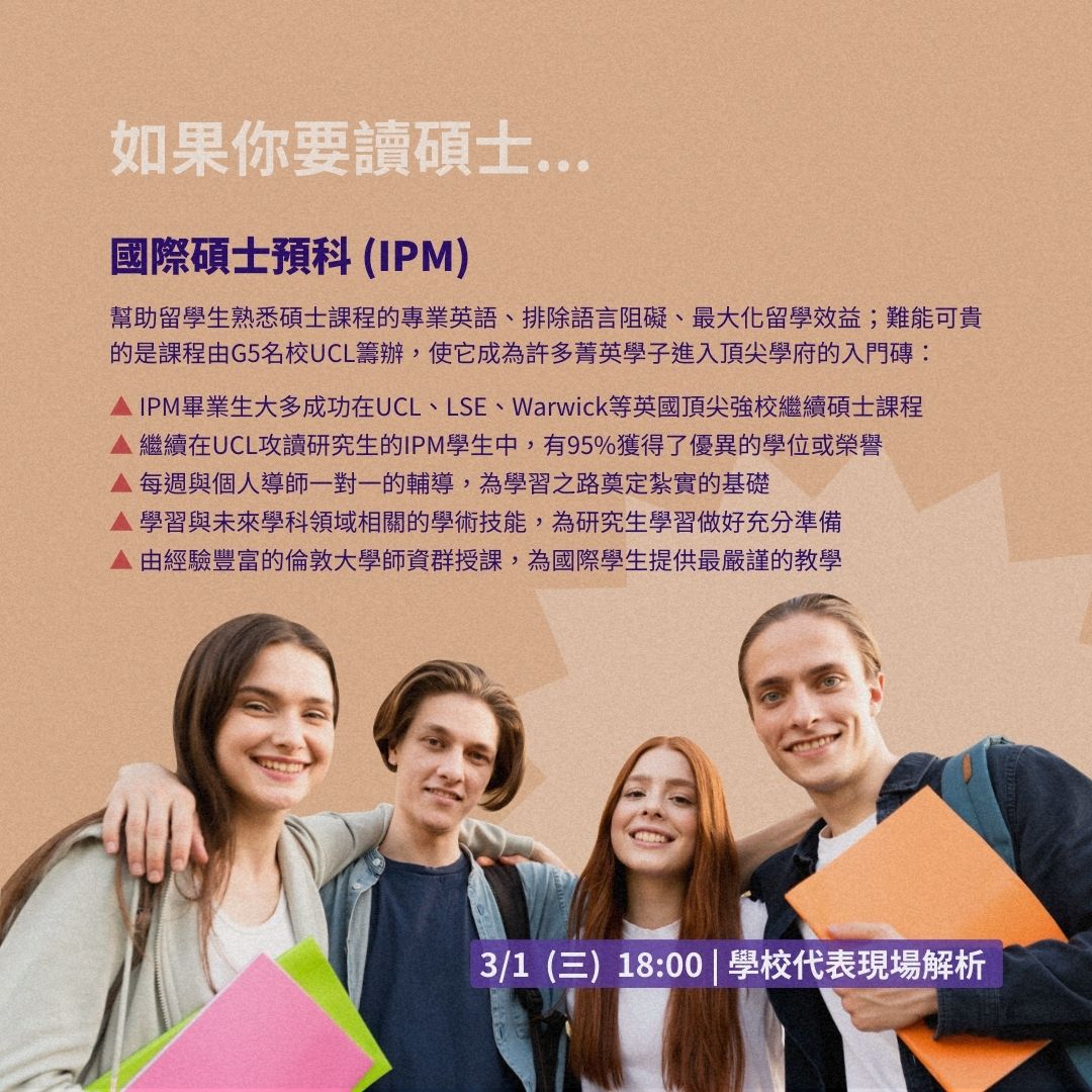 每年都有優秀的台灣高中生透過UCL預科進入UCL、Imperial、KCL、Manchester、Durham等名校,津橋資深顧問也在現場提供豐富的留學申請經驗,包含入學考試及面試準備方向喔~