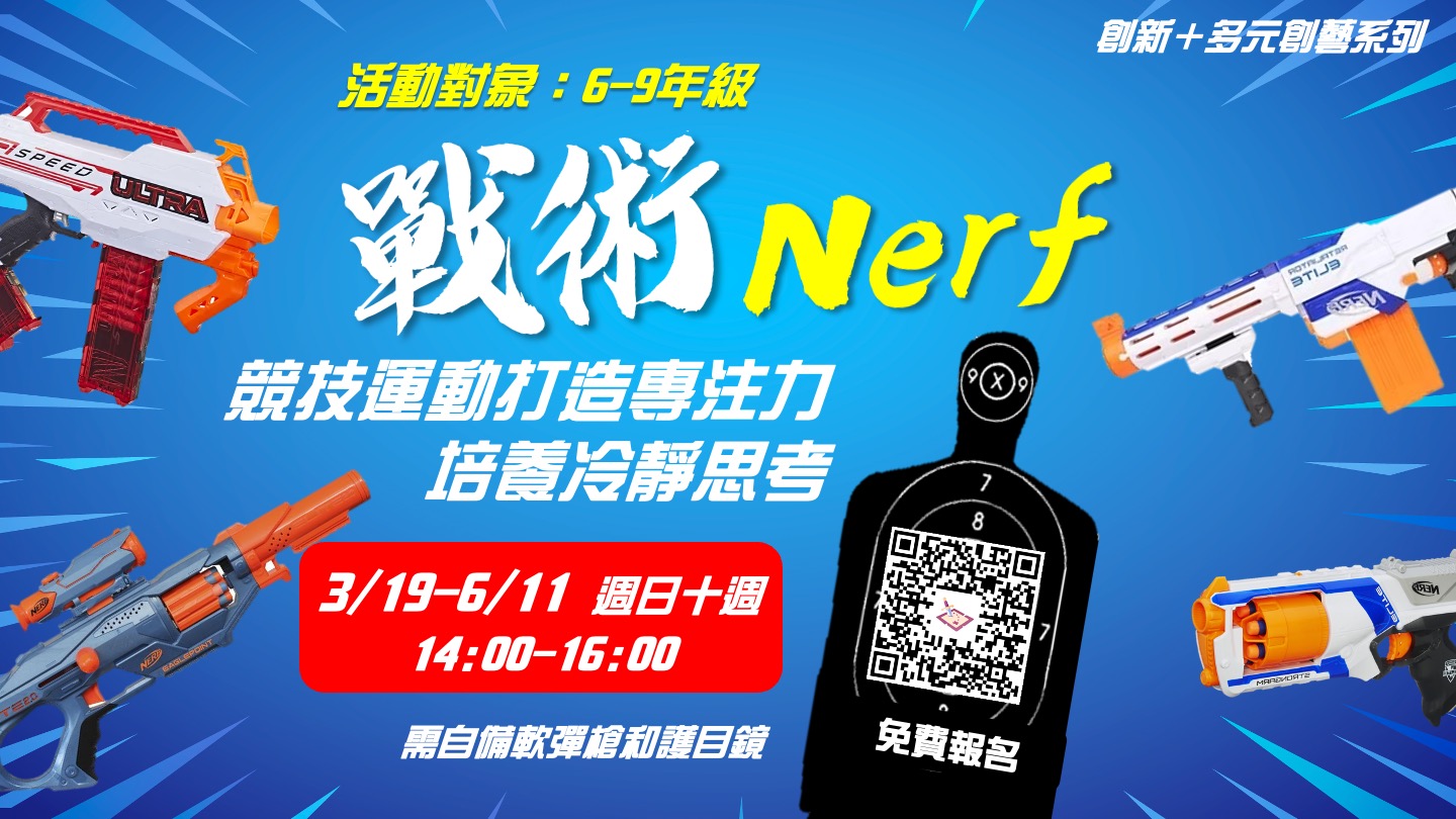 ⚠️需自備軟彈槍(EX: Nerf、工匠、X-shot......)及護目鏡(有戴眼鏡者可省略),無需自備子彈也可參與。